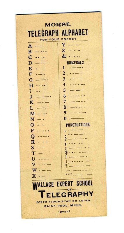 Wallace Expert School Telegraphy & Railroading St Paul Minnesota 1900 Morse Code