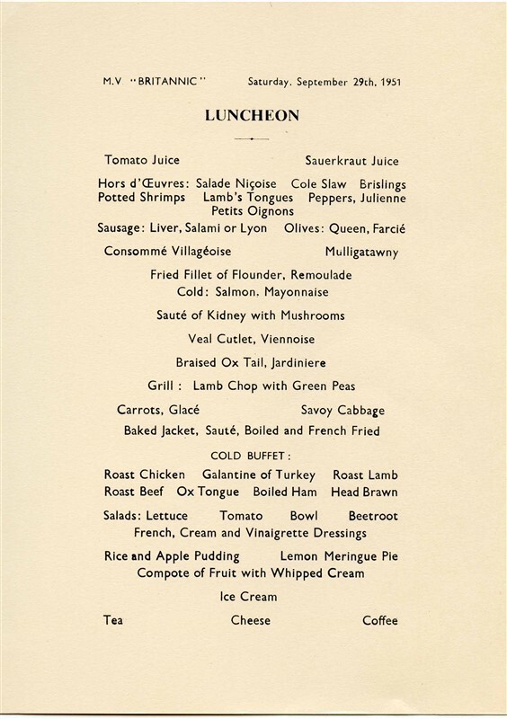 Cunard White Star Line Cabin Class Luncheon and 50 similar items