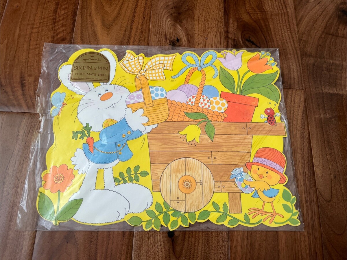 VTG Barnaby Bunny Hallmark Easter Spring Die Cut Out Placemats Set of 6 NEW 1976