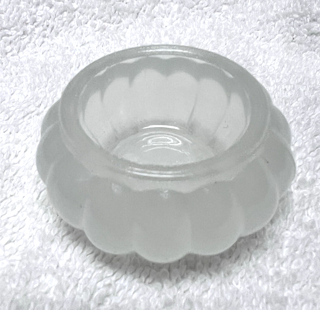 Vintage Bulbous Round Ribbed Frosted Glass Open Salt Cellar Dip 1 3/8" Tall