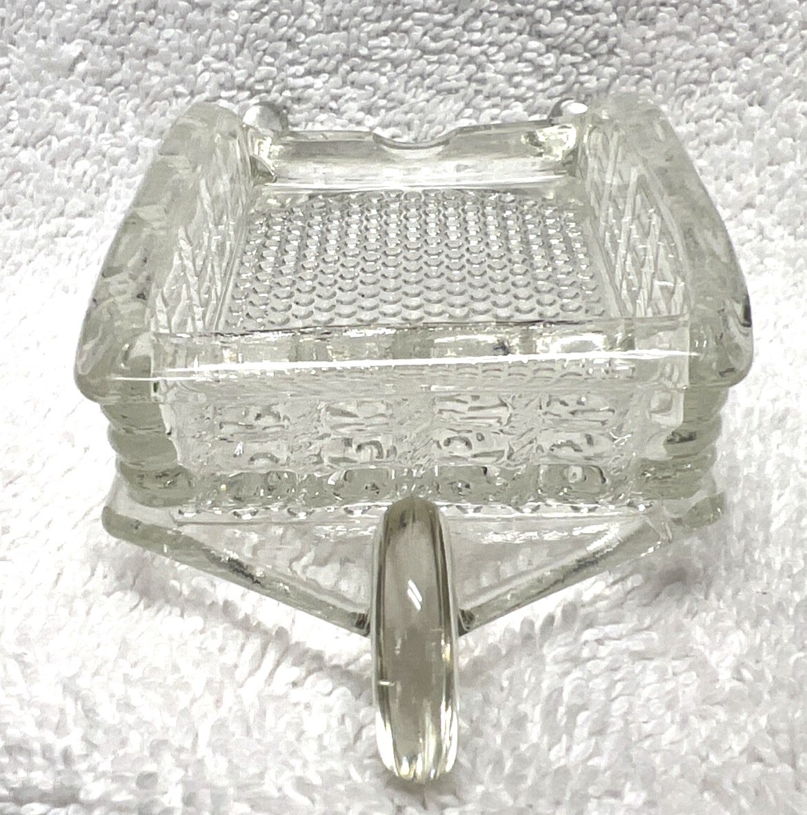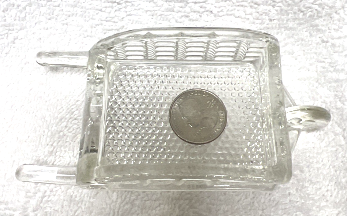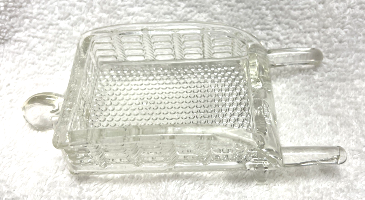 Vintage Crystal Pattern Glass Wheelbarrow Ashtray Candy Container Barware. Crystal wheelbarrow pressed glass pattern ashtray candy container measures approx. 5 1/2" long, 2 3/8" wide, 1 1/2" tall/deep, no damage or signs of use. See pictures.