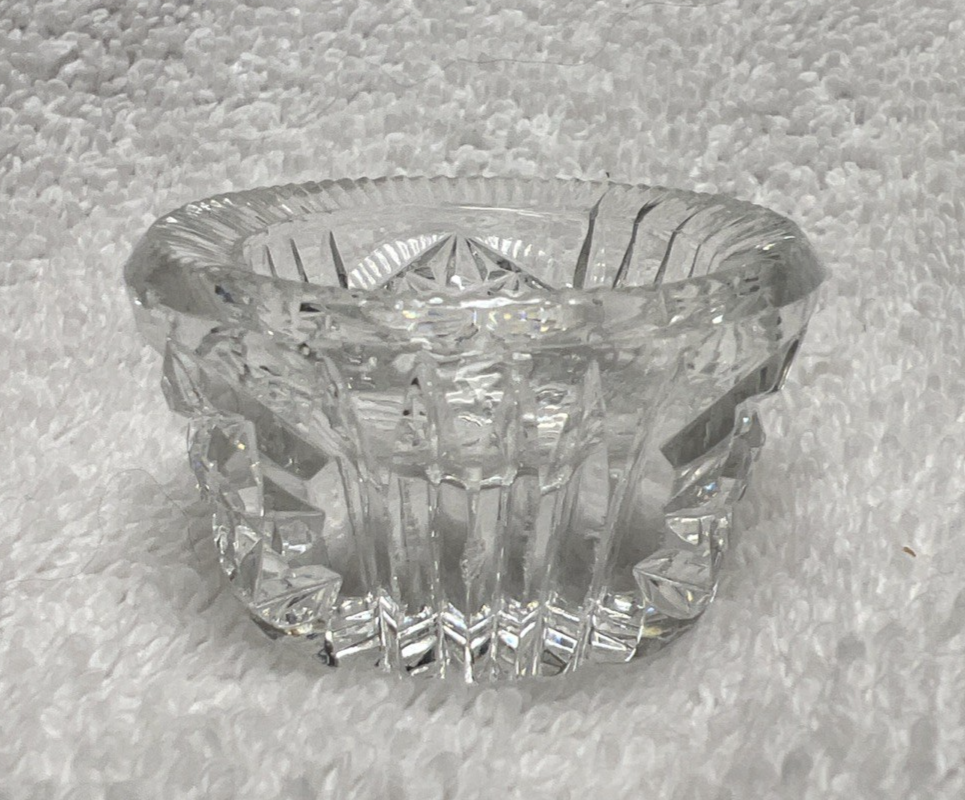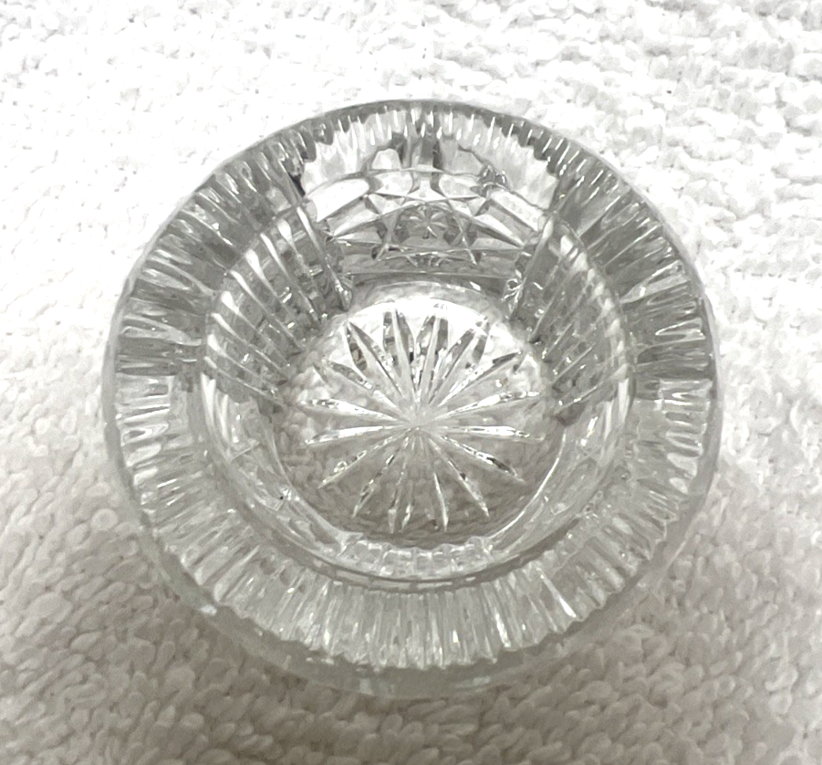 Vintage Crystal Cut Glass Star Ridged Rim Open Salt Cellar Dip 1 1/4" Tall