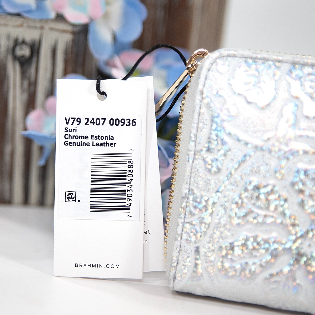 Brahmin Chrome Iridescent Estonia Leather Suri Zip Around Wallet NWT