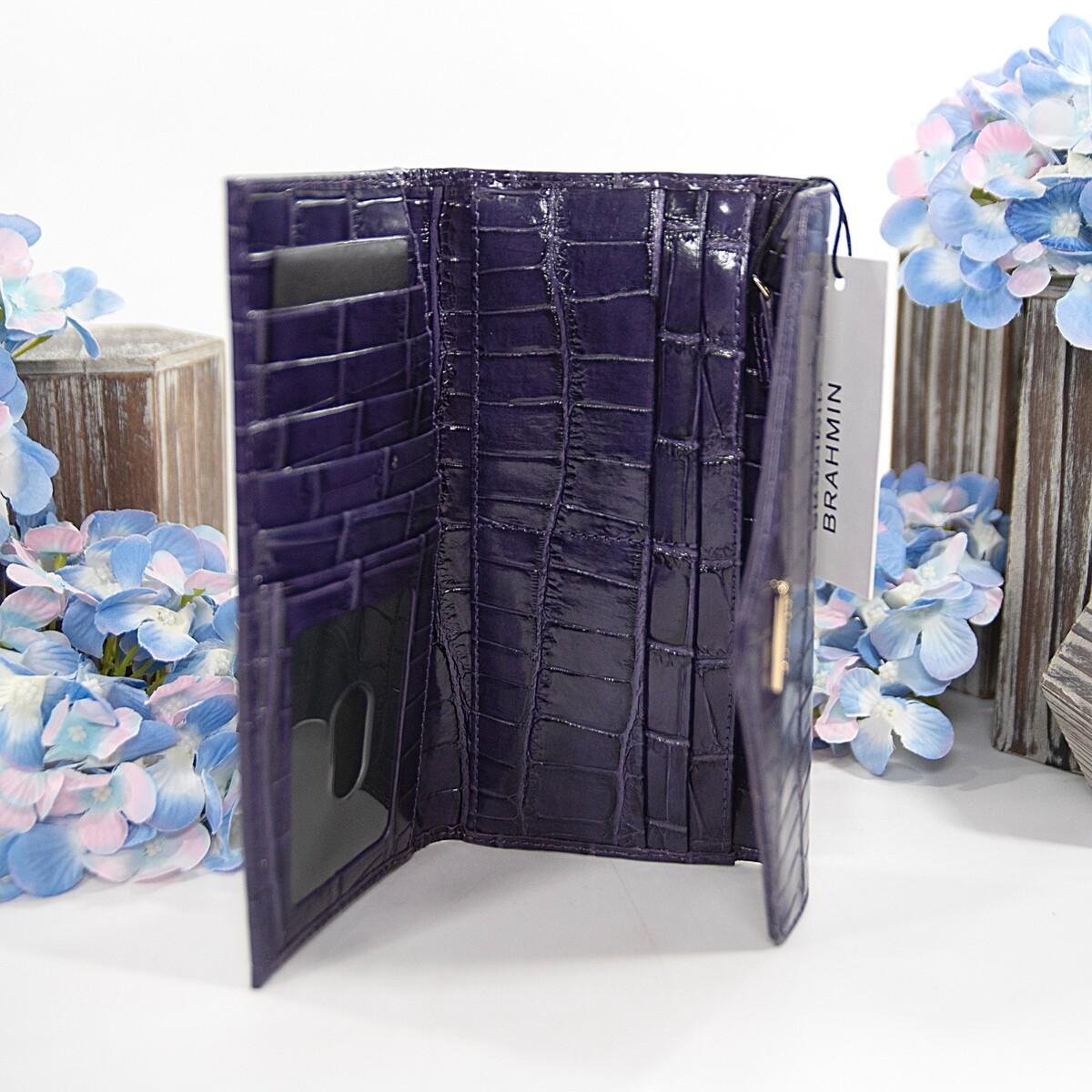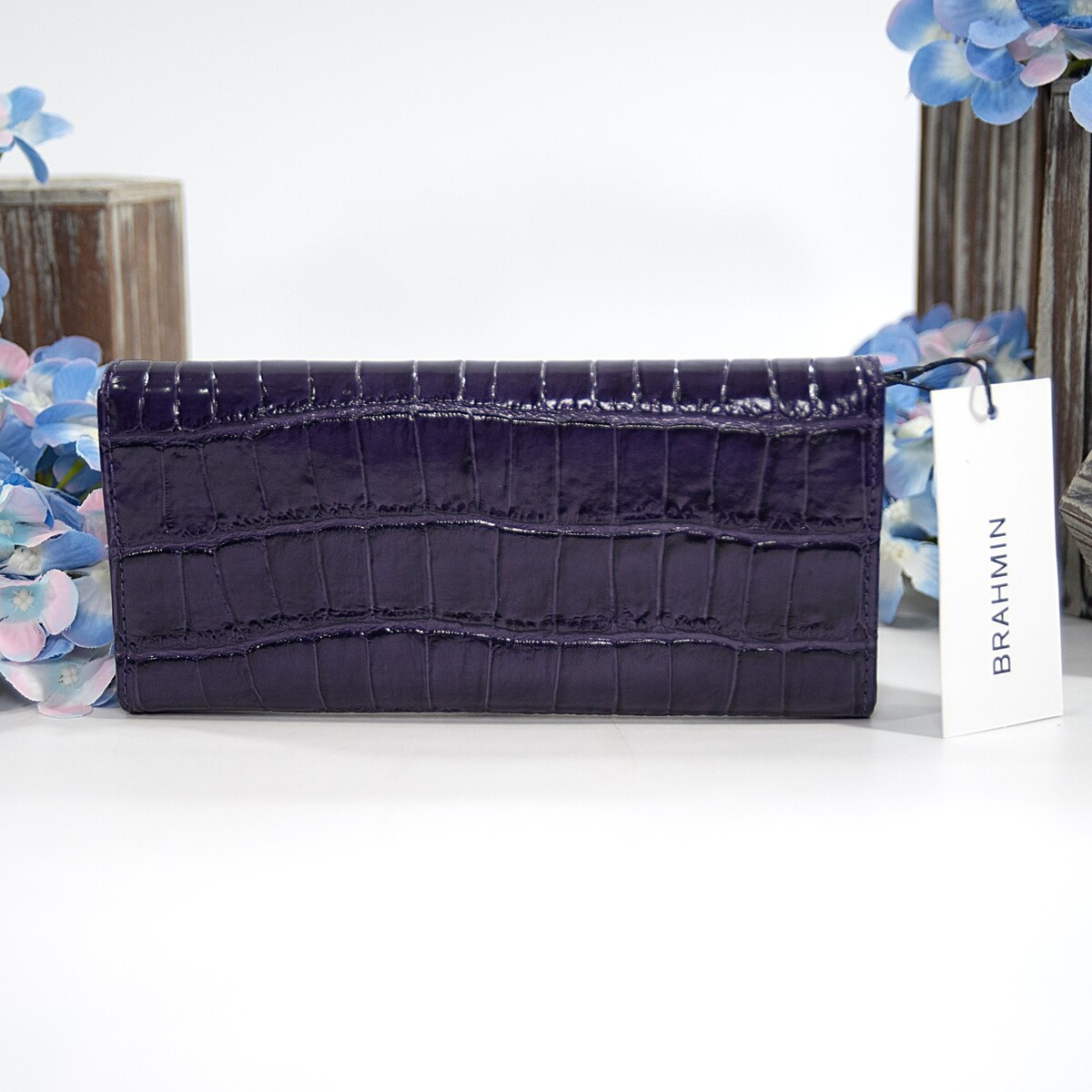 Brahmin Voltage Violet Sirona Croc Leather Veronica Trifold Wallet NWT
