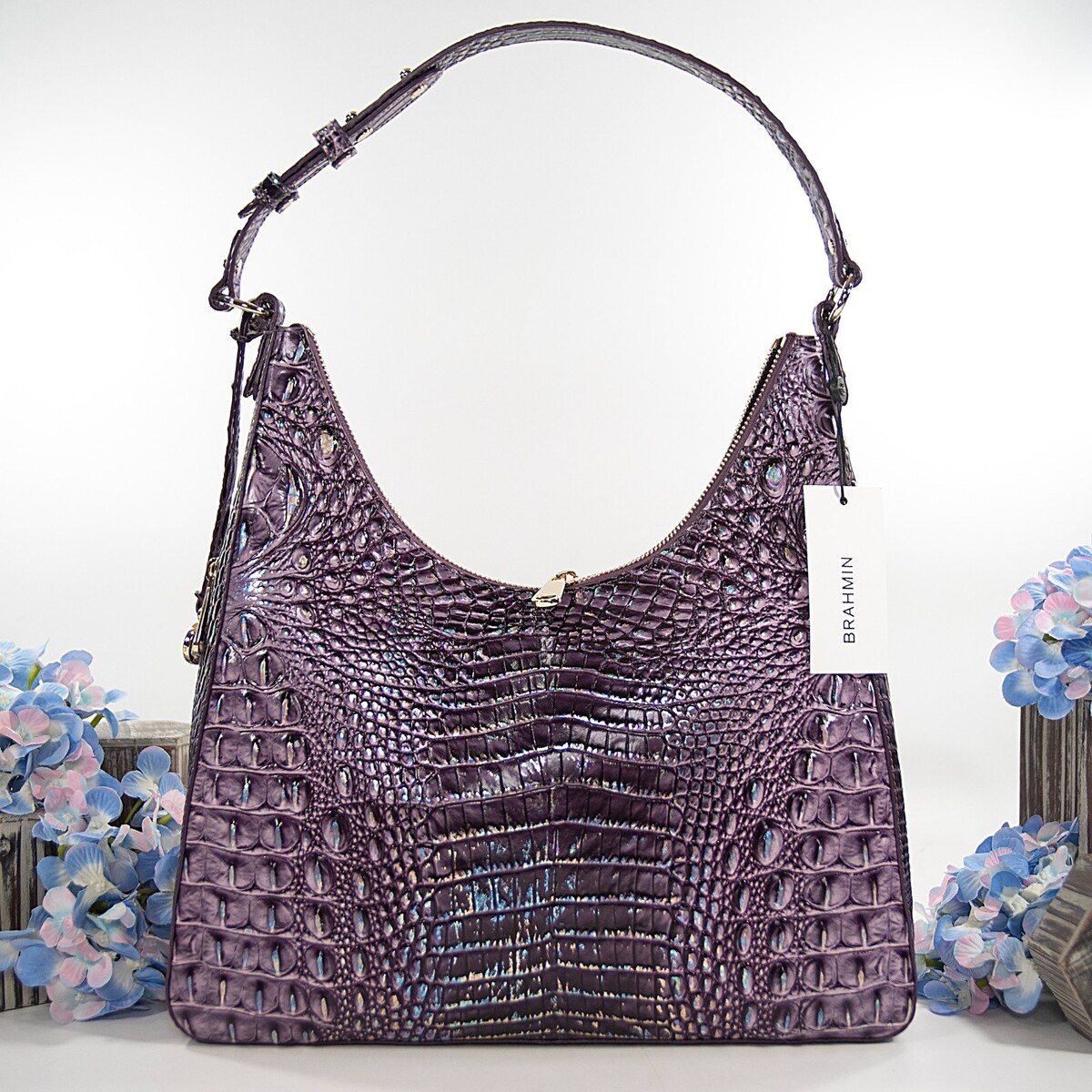 Brahmin Passion Purple Iridescent Melbourne Leather Tabitha Shoulder Bag NWT