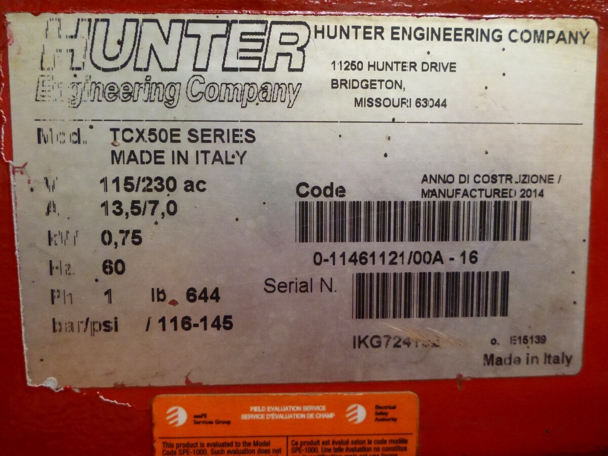 Hunter TCX50E TCX51EL Tire Changer Changing and 49 similar items