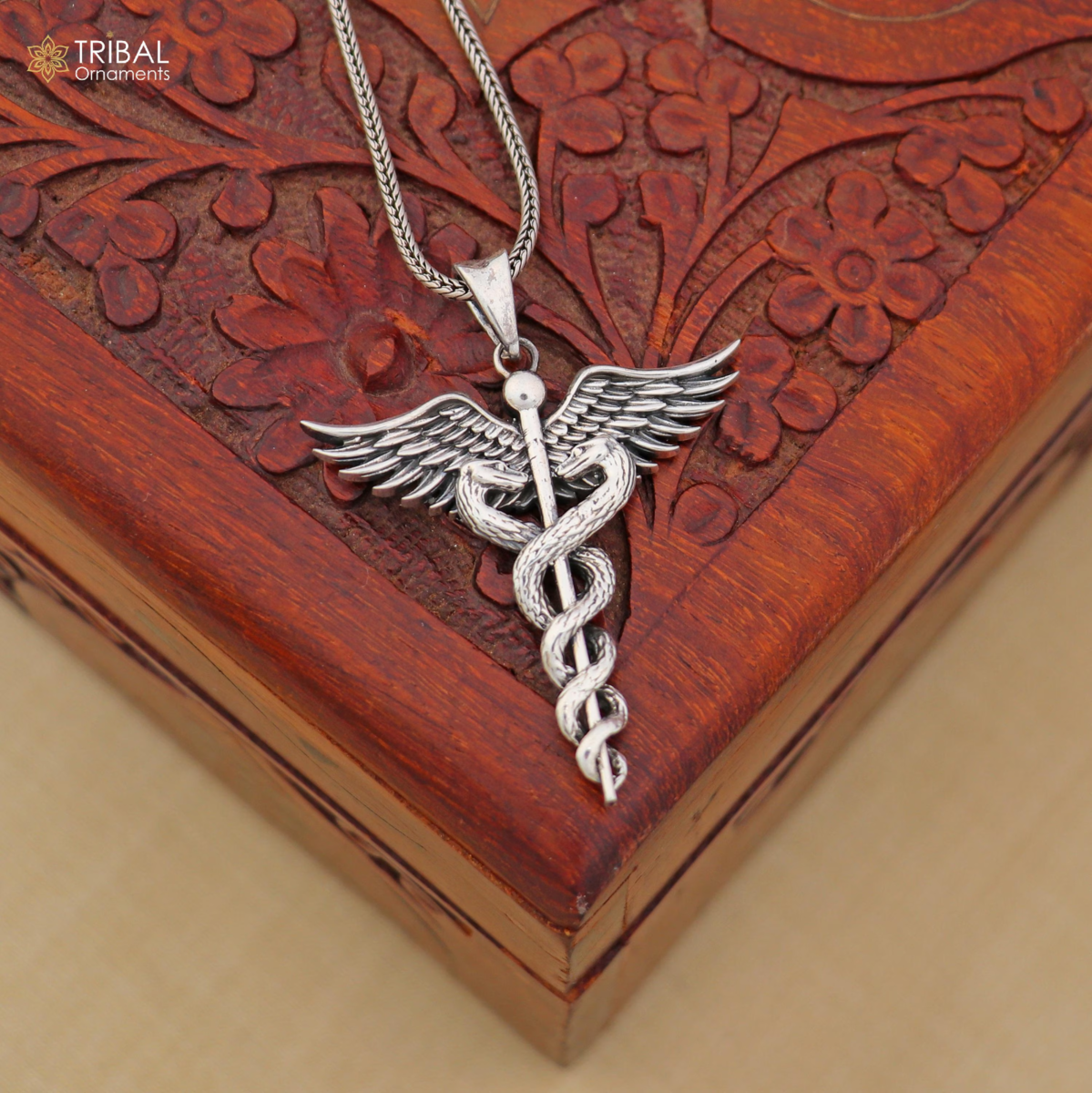 925 sterling silver Caduceus Symbol Pendant with chain tribal jewellery nsp1099