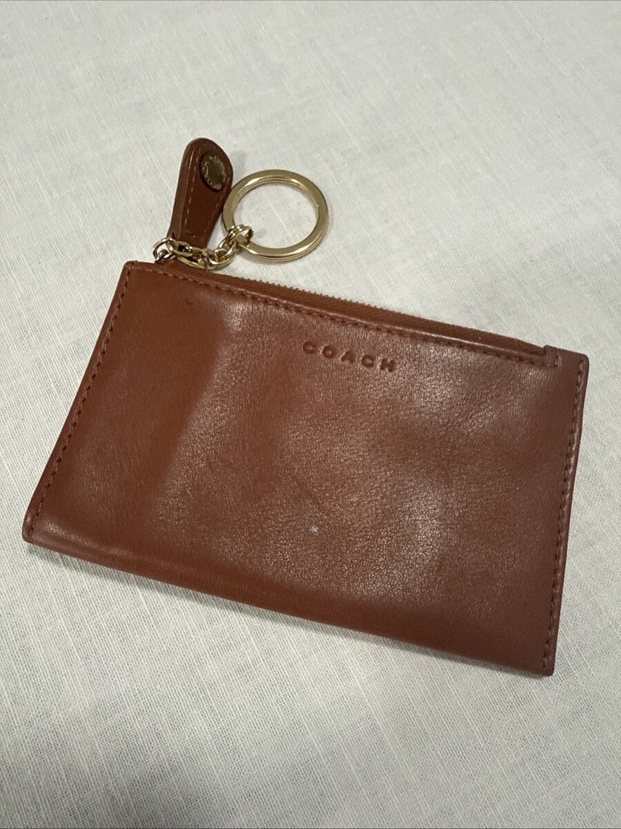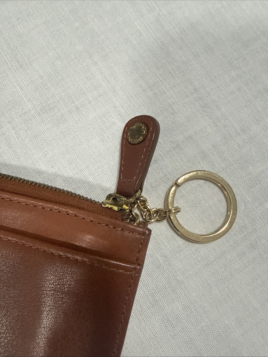 Coach Leather Change Wallet Keychain Tan Brown Zippered Vintage