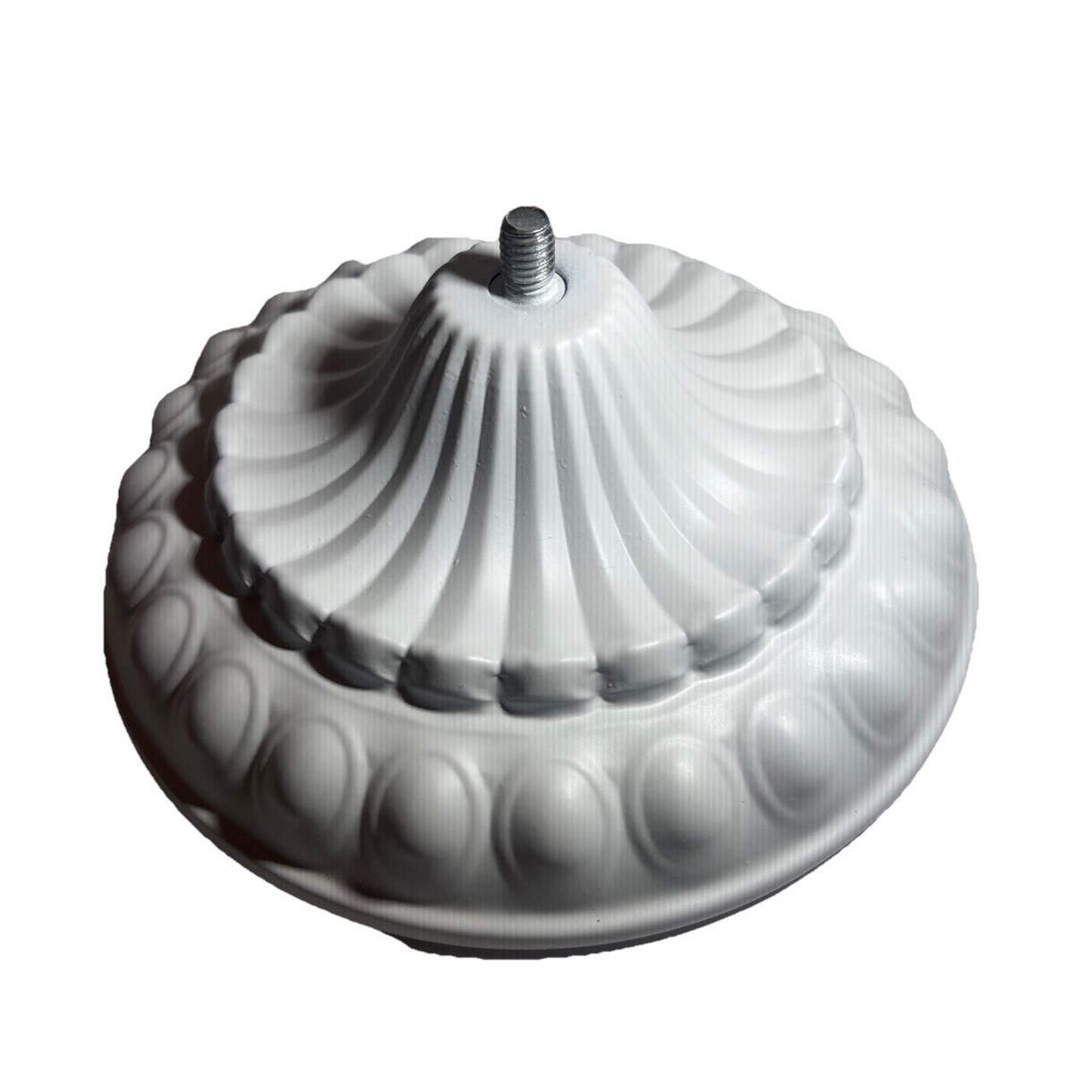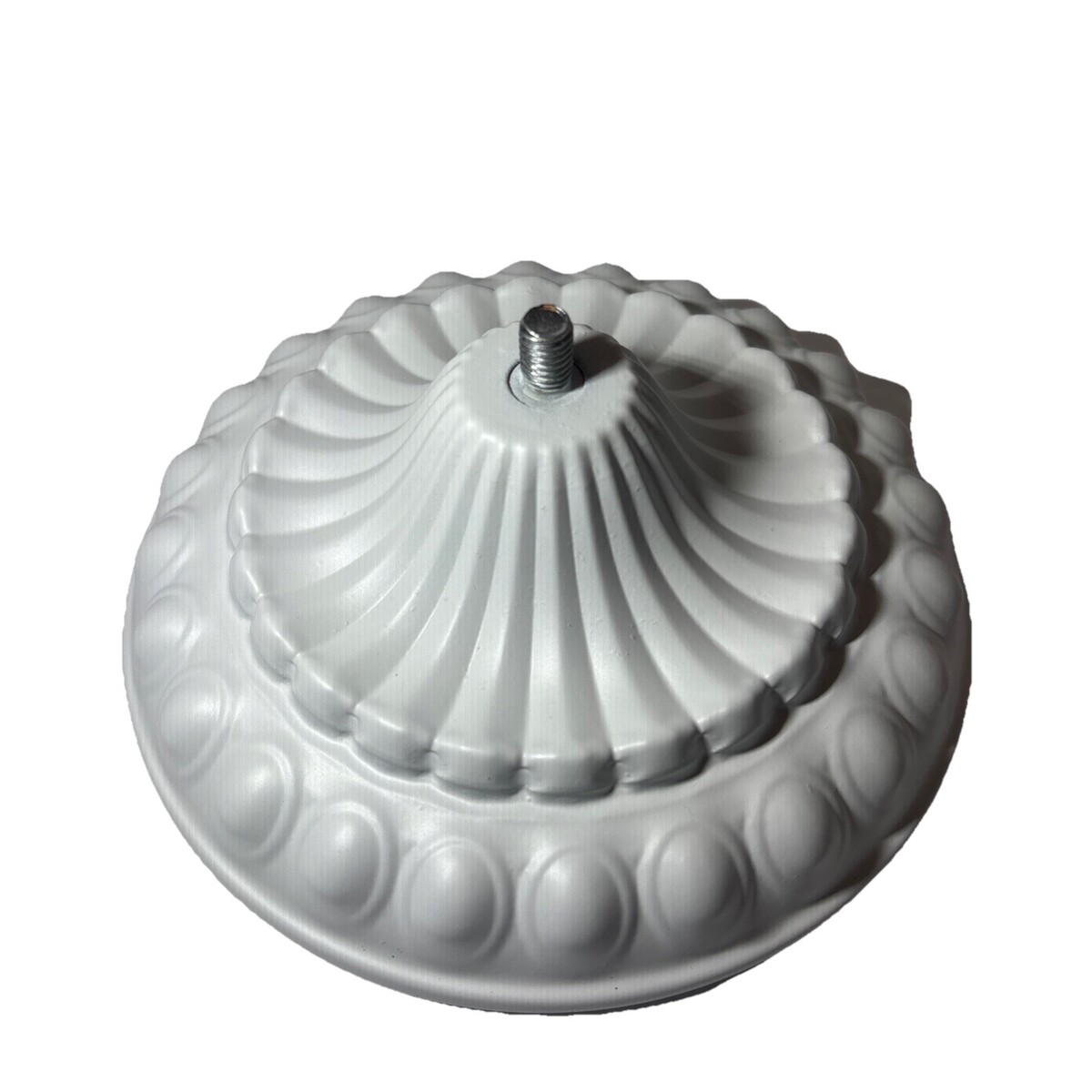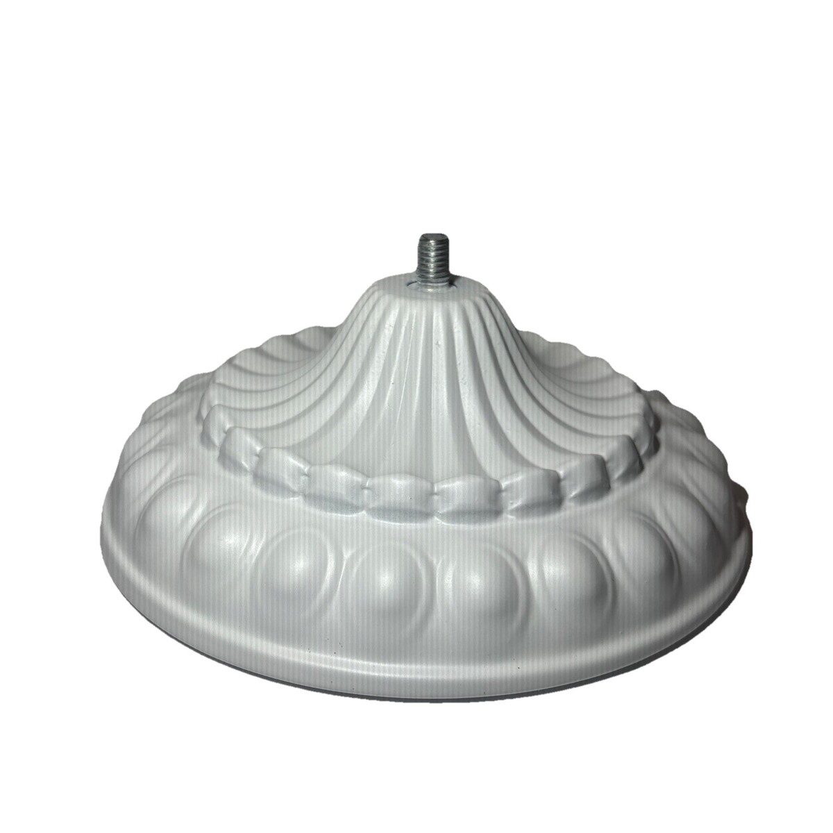 This product is a vintage/antique white metal lamp base that exudes a Victorian style. With a medium size and easy installation feature, this electric-powered lamp base is perfect for adding a touch of nostalgia to any room. Its metallic finish adds a touch of elegance, making it a unique and charming addition to any collection or lighting fixture.