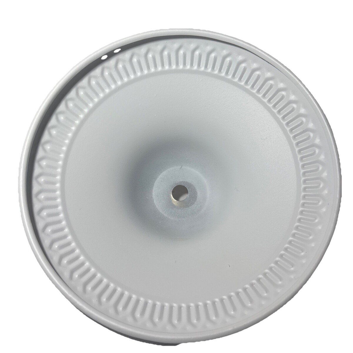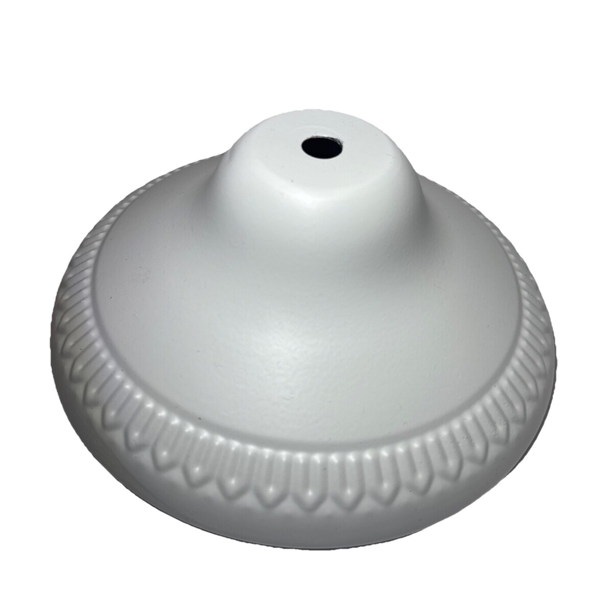 This product is a medium-sized white metal lamp base with ridges, featuring a Victorian style and metallic finish. It is branded as antique and is designed for easy installation. The lamp base is electric-powered and made of metal, adding a touch of vintage charm to any room with its unique design and vintage appeal. Perfect for collectors or those looking to add a touch of antique elegance to their home decor. However, please note that this product is missing the screw-in fixture for the lamp/bulb.