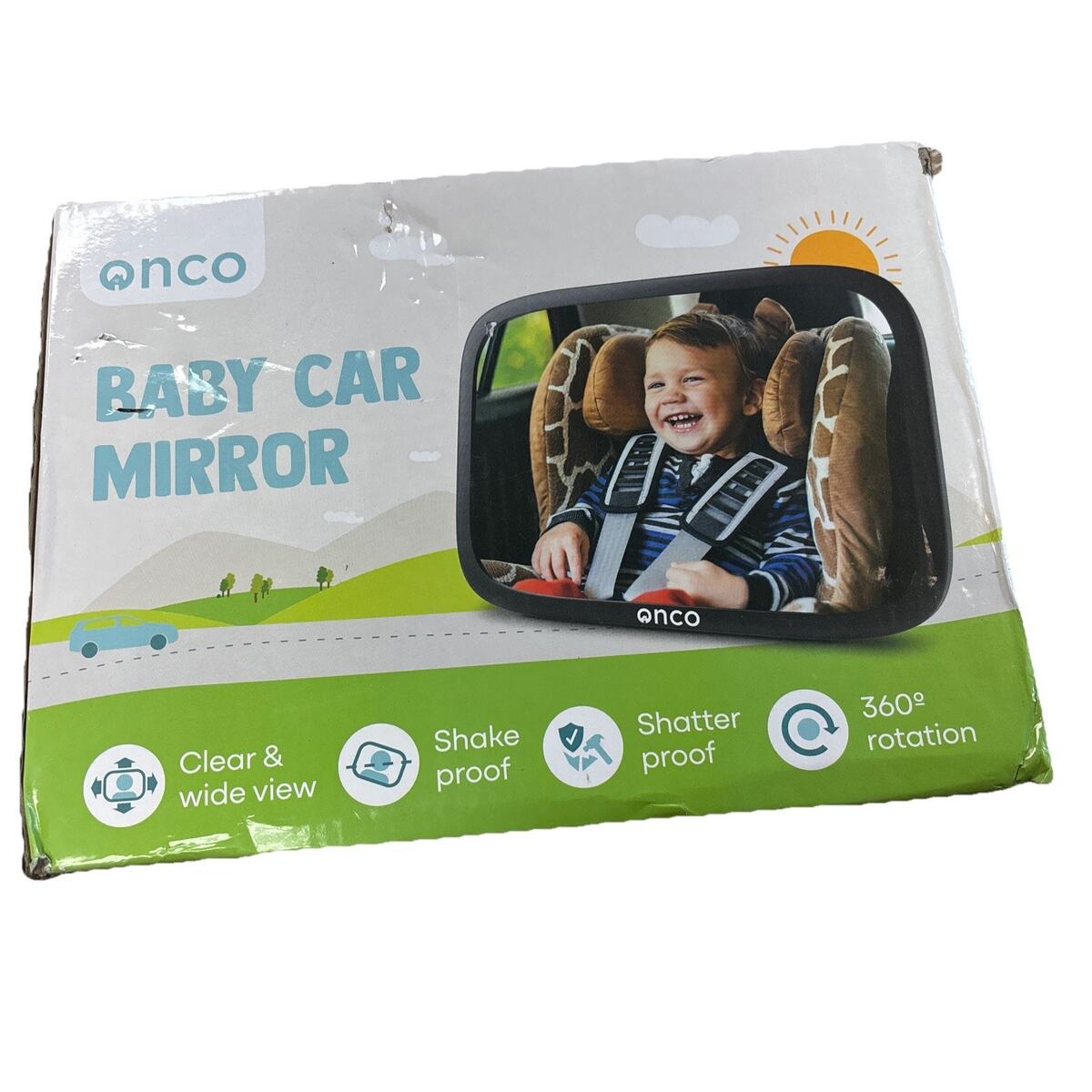 Onco Baby Car Mirror Rear Facing Shatterproof 360 Rotation -Damaged Box