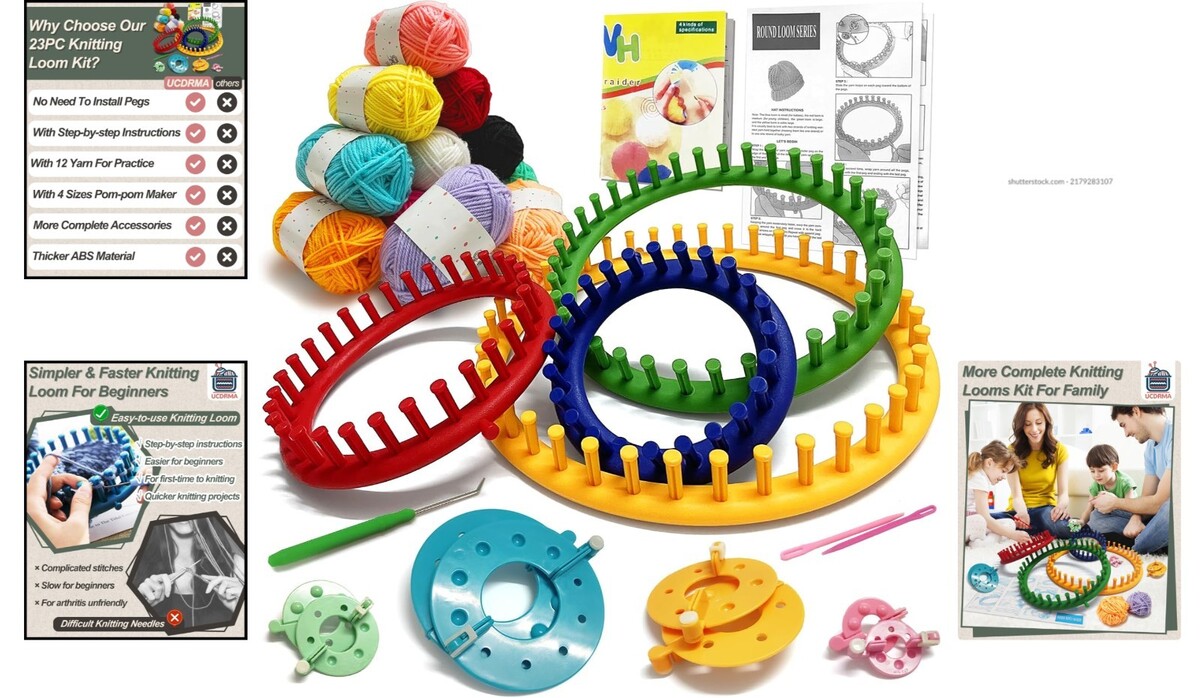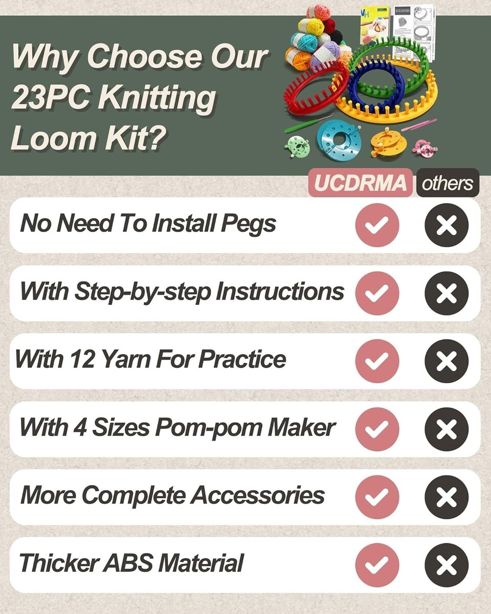 Quick & Easy 23PCS Loom Knitting Kit - Perfect for Beginners and Family Fun