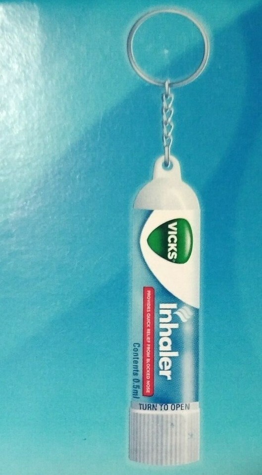 You are Buying a brand New And Factory Sealed 2 Pcs Vicks Inhaler Nasal Congestion Allergy Blocked Nose Key Chain