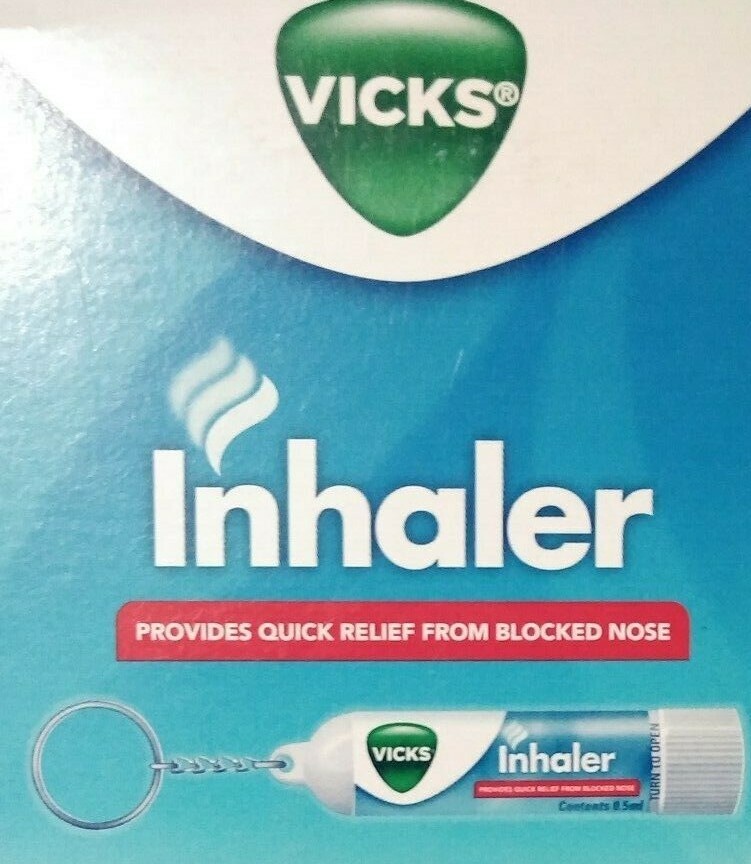 Provides immediate relief from nasal congestionideal to fight the symptoms of common cold, hay fever, upper respiratory allergies or sinusitis instant breathing easy use and smells good great way clear your sinuses temporarily relieves congestion due colds, fever comes attached with a key chain for portability no bigger than chapstick convenient easily fits in any pocket size: 2 pcs Vicks inhaler for nasal congestion,allergy blocked nose with key chain ingredientsactive ingredientsmenthol, camphor, siberian pine needlealso contains: methyl salicylatedirectionsuse as often needed. Adults and children 12 years over2 inhalations in each nostrilchildren 6 to under with adult supervision 1 inhalation nostril Vicks ? inhaler key chainVicks provides immediate relief from nasal congestion due common cold, hay fever, upper respiratory allergies or sinusitis. One can even use it to fasten key thanks its attached chain.
