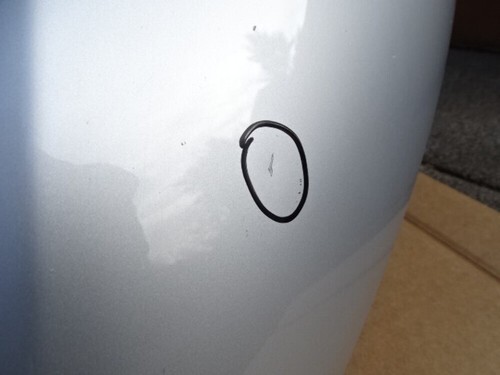 Notes: Paint color is silver. Has a small dent circled. Has light scratches.