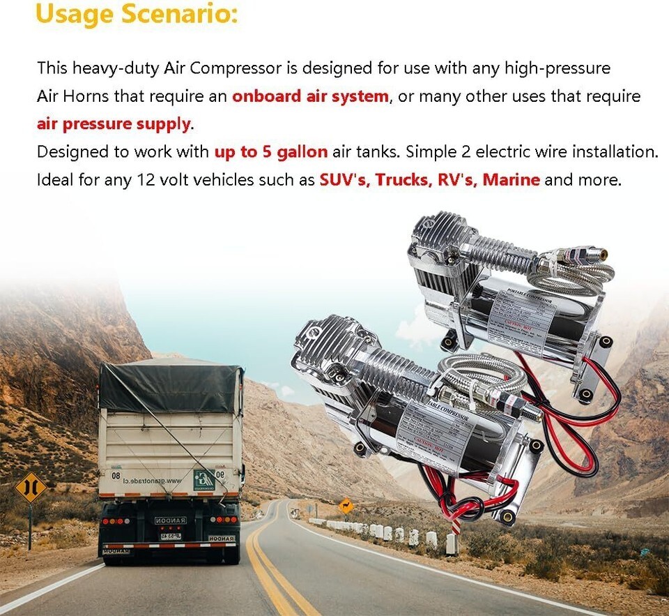 Dual Heavy Duty Onboard 12V Air Compressors and 26 similar items