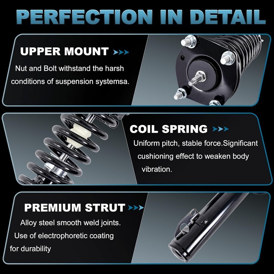 ?Strut Assembly Fitment? Compatible with 2006 - 2010 Jeep Commander, Compatible with 2005 - 2010 Jeep Grand Cherokee EXCEPT SRT8 ?Struts/Shocks OE Number? 171377L, 171377R, 32407, 181377L, 181377R, 911278, 344496,9214-0146,XS845144322,554377,XS845144221,1214-0168, XS344157920P, 1924496 ?Struts/Shocks Function?The strut assembly features chrome piston rods with OE brackets and mountings to prevent leakage. Its seamless sleeves guarantee smooth gliding, the steel coil spring brings high efficiency shock absorption,noise reduction, improved vehicle operational stability, vehicle wear reduction, more comfortable and safe driving experience. ?Struts/Shocks Features?OE standard,professional Multi-test, accurate fitment,directly replacement original shocks.High silicon content resists metal fatigue,stable and durability; Electro-coating,anti-corrosion and anti-oxidation. ?When/Why to Replace Shocks?If the vehicle is experiencing problems such as ride quality reduction, poor handling,noisy,insufficient stability, replacing the shocks can quickly and effectively resolve these problems. Shocks failure will affect other parts of the vehicle and may even require replace the entire suspension system.Timely replace shocks can prevent these problems and save on maintenance costs.