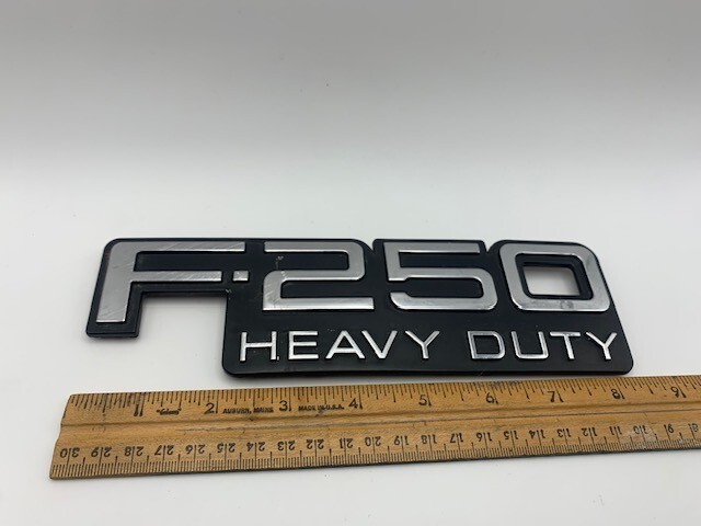 92-97 Ford F250 HEAVY DUTY Front Fender Nameplate Emblem OEM Good over all. Some scuffs and scratches as shown. Please refer to images.