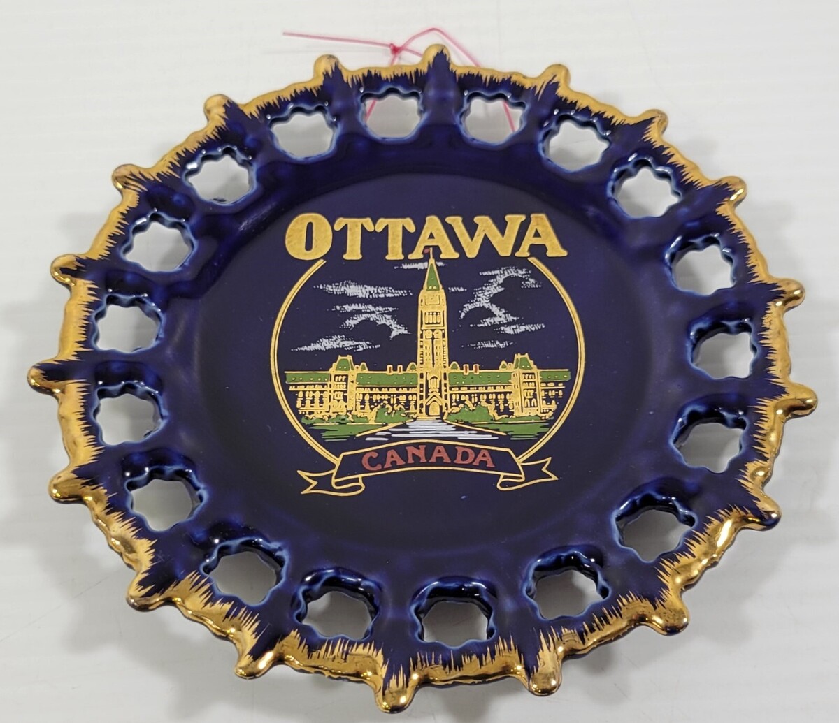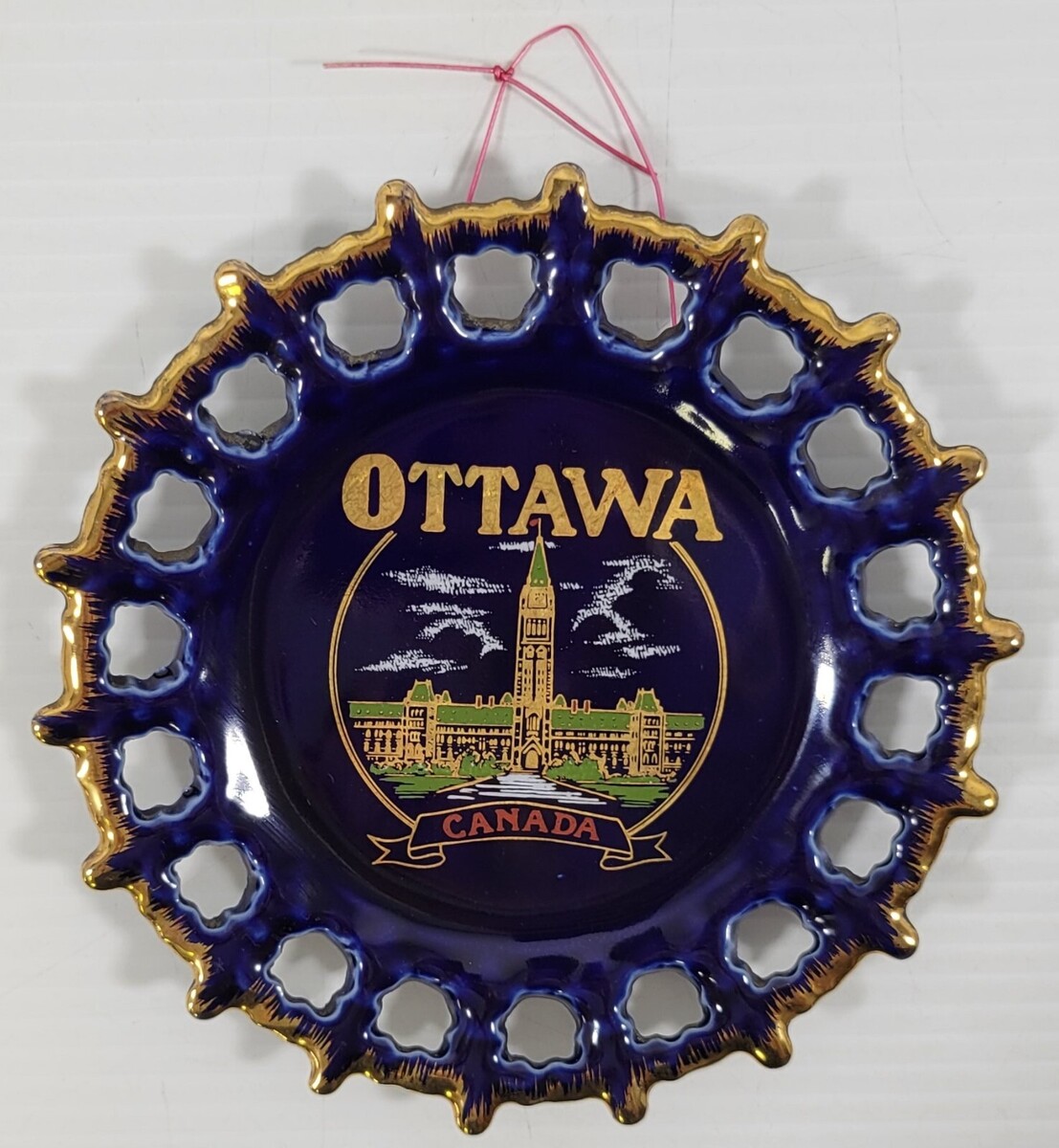 DD) Vintage Ottawa Canada Boat Wheel Souvenir Blue Hanging Decorative Wall Plate