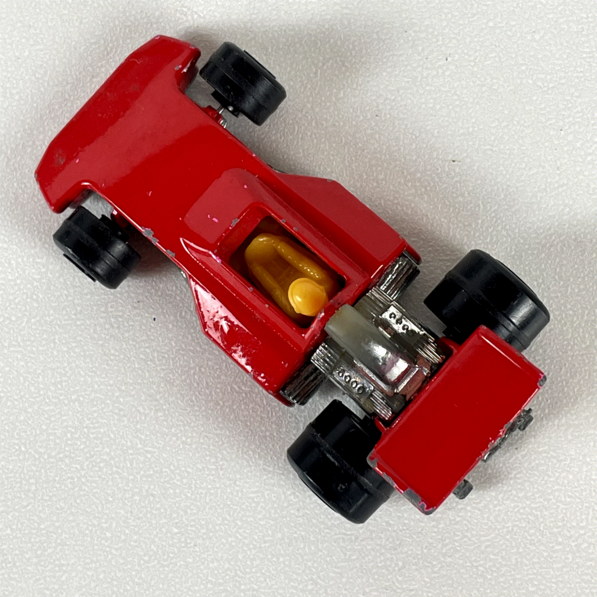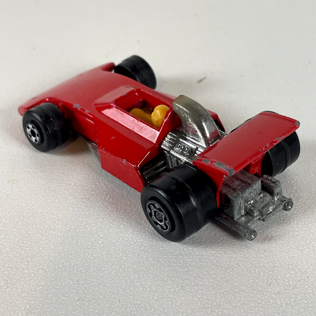 Discover this classic Matchbox Superfast No. 38 Formula 5000 diecast model, a fantastic representation of a vintage open-wheel racer. This highly sought-after collectible from 1975 features a vibrant red diecast body, black Superfast wheels, and intricate silver-tone engine detailing. A yellow driver figure is seated within the cockpit, adding to its authentic design. The distinctive large rear wing completes the iconic racing profile, making it a standout piece for any enthusiast.