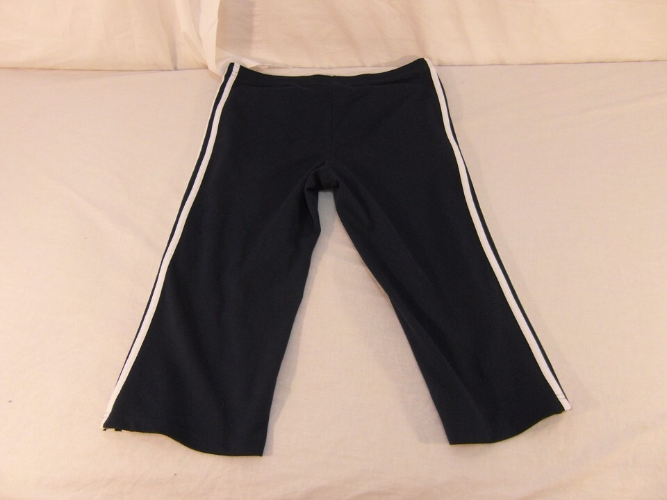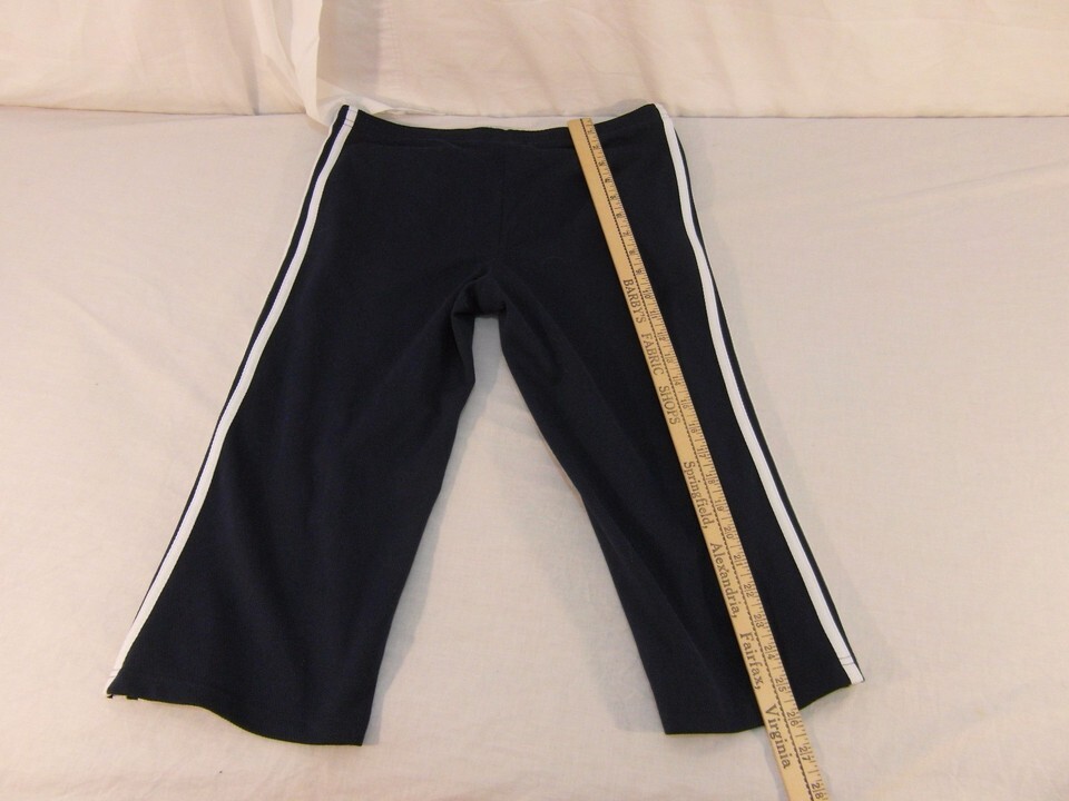 Children Youth Girl's Adidas Navy Blue White Striped Yoga Capri Pants 30904