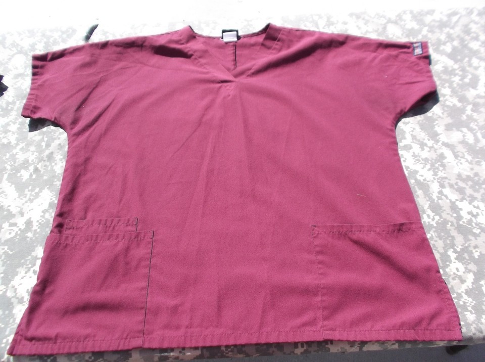 Cherokee Maroon Solid Color/Pattern Nurse/ Vet Uniform Scrub Top 50 CHEST