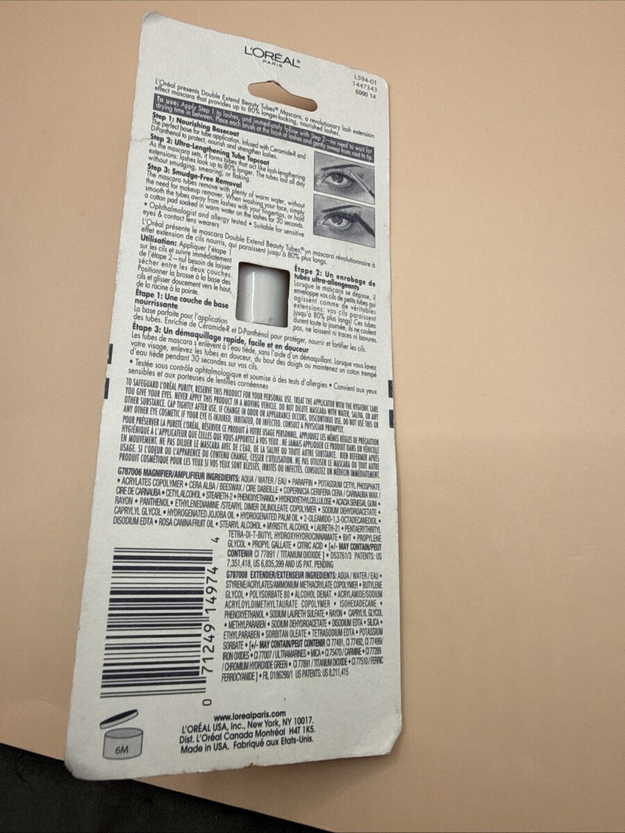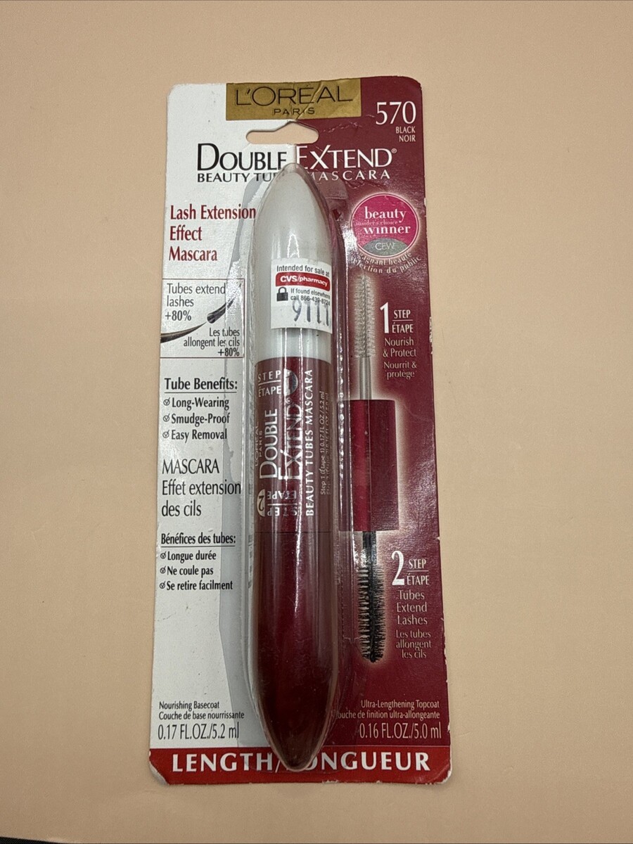 L'Oreal Paris Double Extend 570 Lash Extension Washable Mascara Black. New but the package opened 1/2 way because it got stuck on something else and I pulled it.
