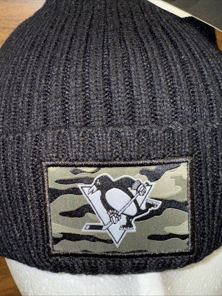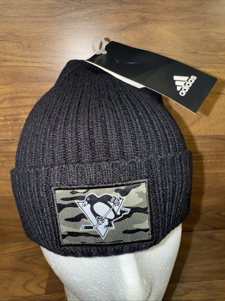 ADIDAS NHL Pittsburgh Penguins Black Cuffed Beanie Cuffed Knit Hat Camo Logo
