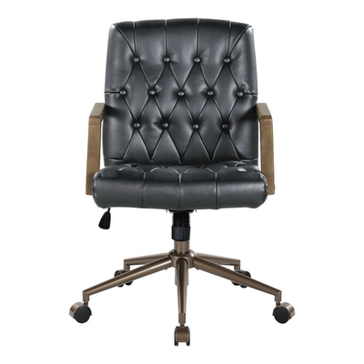With the perfect blend of style, functionality, and crisp, tailored sophistication, our faux leather office chair will add comfort, as the perfect addition to your home office. Featuring a well-suited button tufted detail throughout the seat and back, this chair will add a traditional elegance to any workspace. With 360? swivel, you can effortlessly move around your desk, reaching everything you need with ease. Height adjustable seat ensures optimal positioning for your body. The adjustable tilt tension allows you to customize the seat angle to suit your preferences, promoting a more relaxed and productive work environment.Crafted with a beautiful metal star-base, with bronze finish, this chair not only looks great but also offers long-lasting durability. The burnished metal caster caps add a stylish upgrade, making this chair a statement piece in your office. Tailored faux leather office seating Attractive button tufting detail 360 swivel Height adjustable seat Adjustable tilt tension Beautiful star-base in bronze finish Burnished metal caster caps Assembly requiredSpecifications:- Box 1 Height : 12.00- UPC : 090234594345- Attribute Dimensions (in) : 35, 24- Box 1 Width : 21.00- Brand : OSP Home Furnishings- Attribute Depth (in) : 24- Box 1 Weight : 33.00- Box 1 Depth : 24.00- Packing Time (days) : 2- Delivery Time (days) : 7- Height: 35.0 in