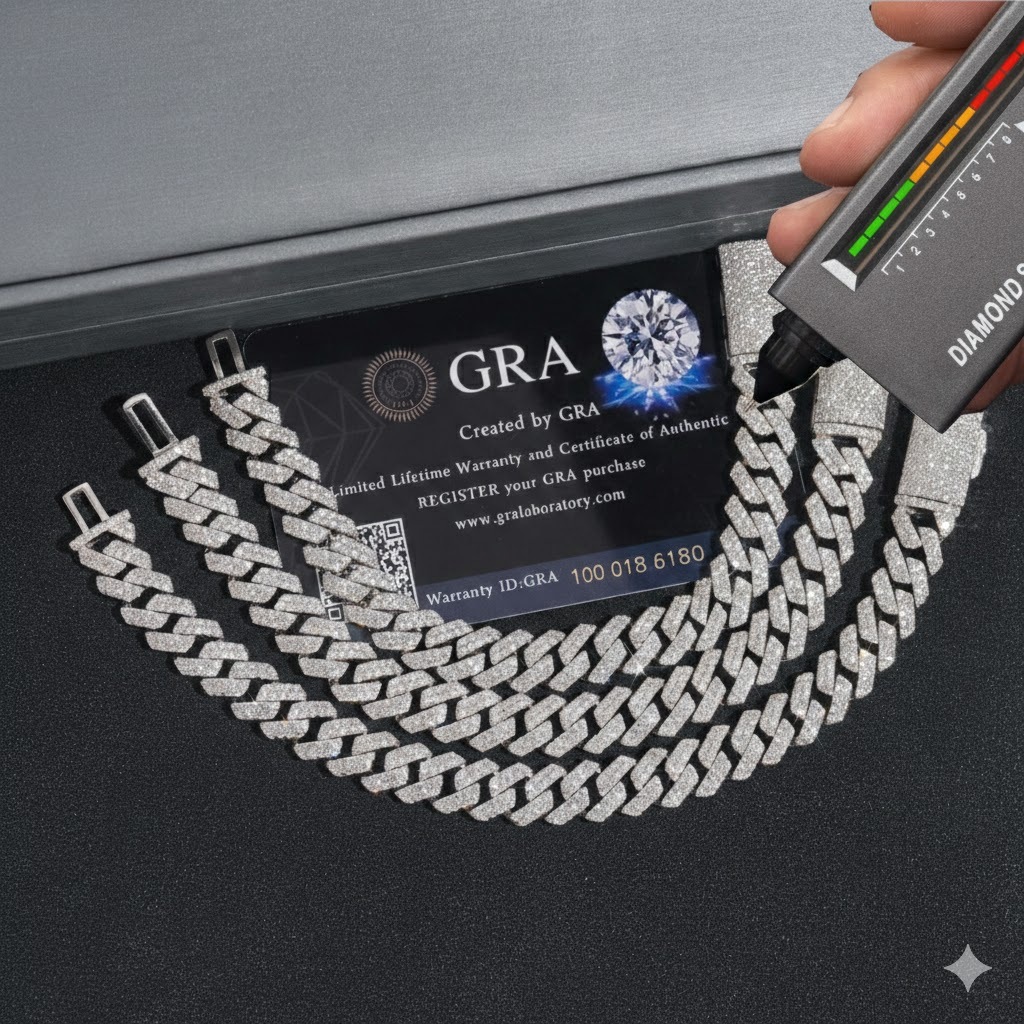 MOISSANITE 10MM Cuban Link Bracelet 925 Silver Iced Pass Diamond Tester Hip Hop