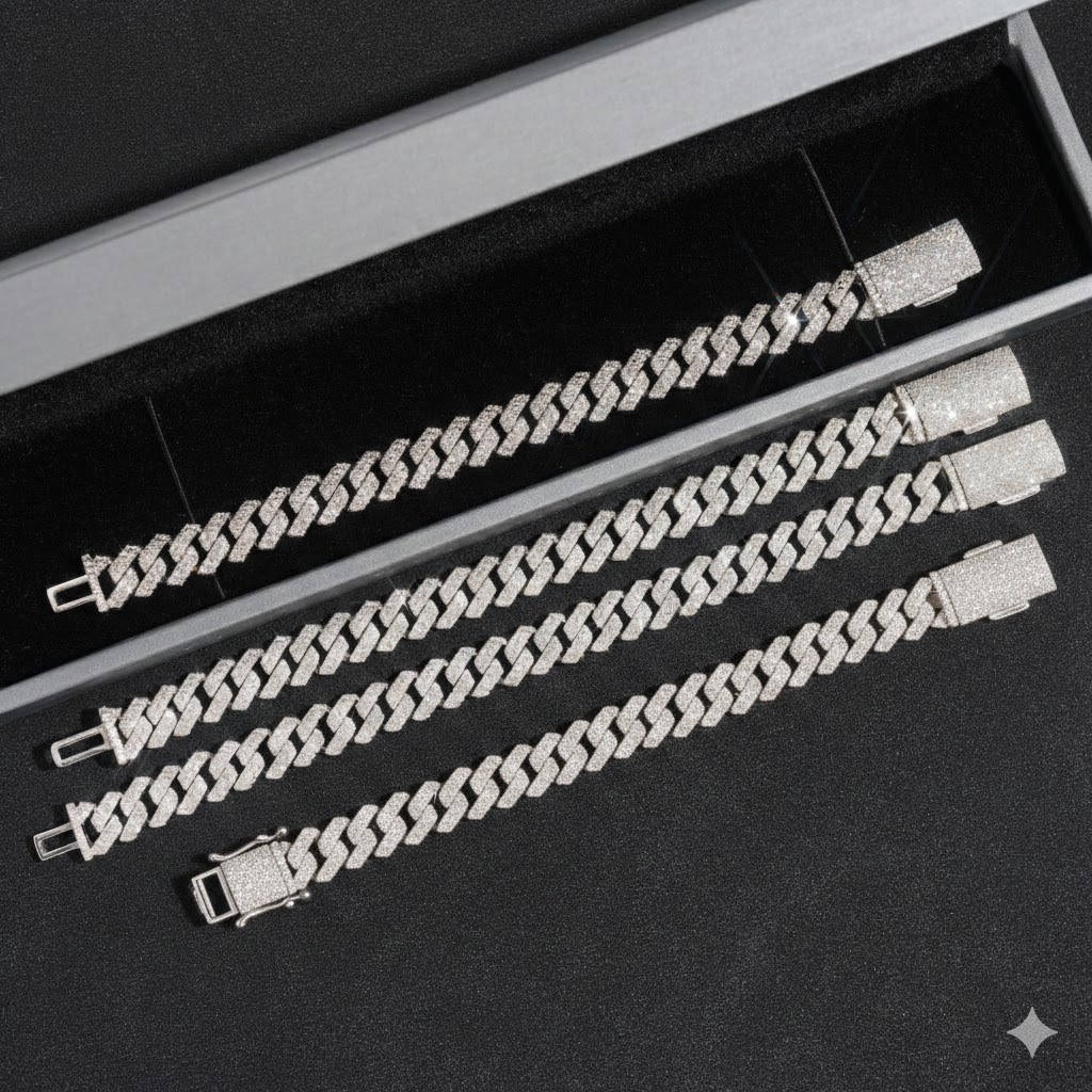 Hip Hop Jewelry 10MM Moissanite Diamond Bracelet 95Silver Iced Out Moissanite Cuban Link Bracelet USA Local Stock