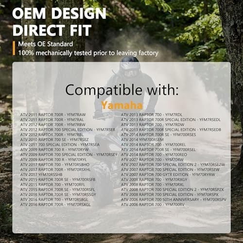 ?Vehicle Fitment?Yezoauto fuel pump compatible with Yamaha Raptor 700 YFM700R 06-23 / KODIAK 450 18-23 / VIKING 20-23 / WOLVERINE X4 20-23 ?Interchange Part Number?OE# 1S3-13907-00-00, 1S3-13907-01-00, 1S3-13907-02-00, 1S3-13907-10-00, 1S3-13907-11-00, 3B4-13907-12-00, BB5-13907-00-00, BB5-13907-01-00, BB5-13907-03-00 ?Function?The fuel pump is the heart of a vehicles fuel delivery system. Its function is to supply clean pressurized fuel to the fuel injectors. In addition to this, it provides the fuel level reading to the vehicles instrument cluster, shuts off the fuel nozzle when refueling, among many other critical functions ?Installation?1.Compare the replacement pump to the new pump assembly to ensure a match.2.Install the new seal ring and new pump assembly in the tank.3.Using a transmission jack, raise the tank just enough to reconnect the fuel hoses, electrical connections and emissions hoses.4.Reinstall the fuel filler neck and secure it with a clamp.5.Reinstall the fuel tank straps and torque the mounting bolts to the specification listed in the factory repair manual.6.Reconnect the negative battery cable ?1-Year Manufacturer?Yezoauto is committed to providing better service and products to our customers, we make sure that every assembly line is harshly inspected and 100% tested before assembly to ensure as much as possible that the product will not have problems. If you encounter any problems during the use of the product, please leave us a message, we will give you a satisfactory answer within 18 hours!