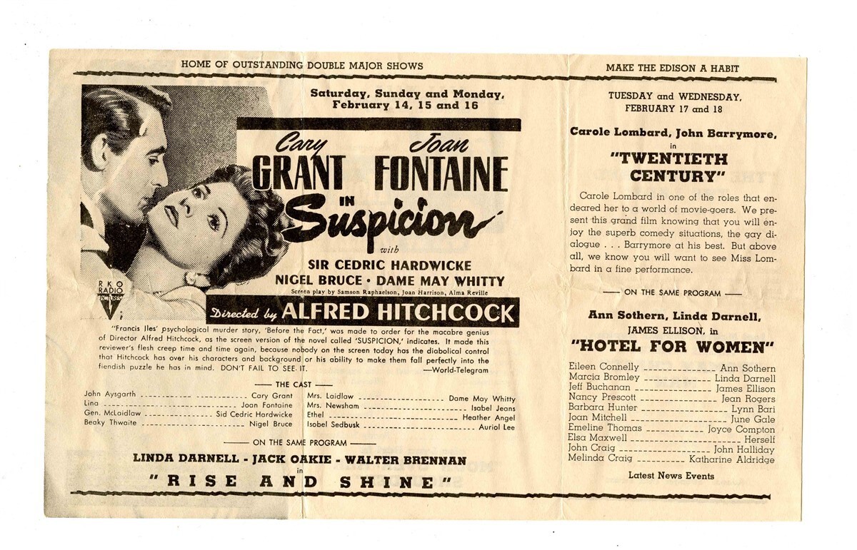 Edison Theatre 1941 Flyer Suspicion Cary and 10 similar items