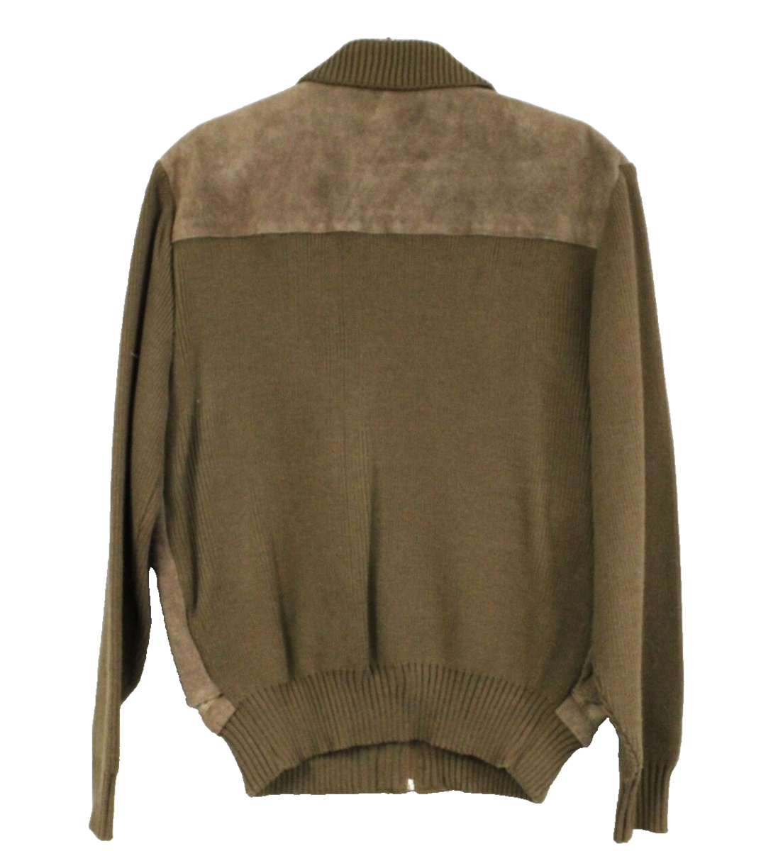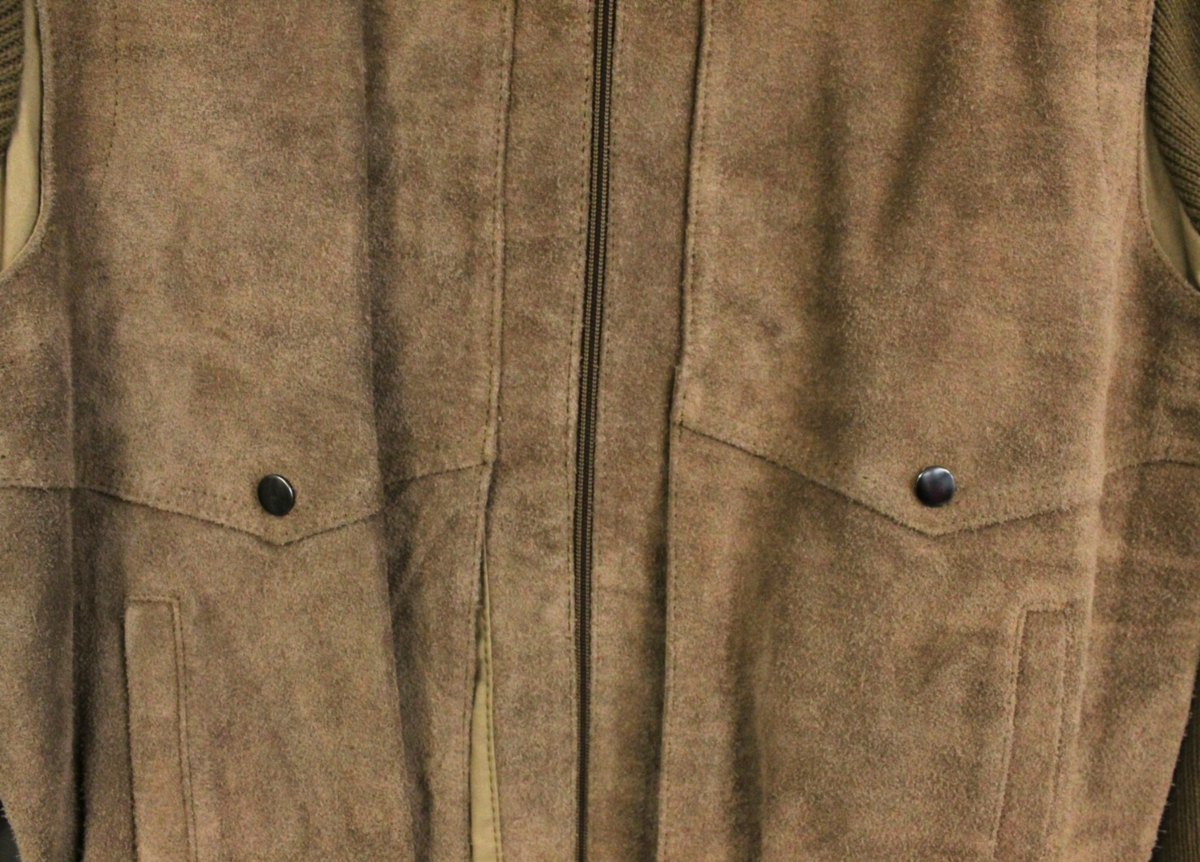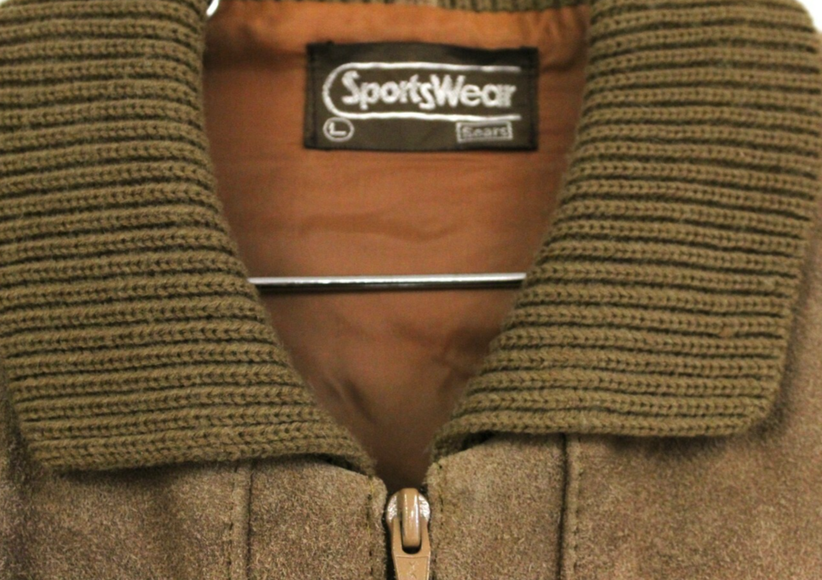 Sears Sportswear produced durable, stylish menswear throughout the 1960s?70s. Suede/knit hybrid jackets like this were staples of casual leisure fashion, offering both warmth and a tailored look.