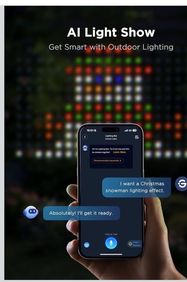The Govee Outdoor Net Lights are a versatile and vibrant lighting solution for outdoor spaces. With 480 LEDs and a size of 2.8x9.4ft, these net lights offer a variety of colors including red, blue, purple, and more. The RGBIC and DIY functions allow for personalized lighting effects, while the app control feature makes it easy to adjust the settings remotely. Made of durable plastic and rated IP65 for water resistance, these LED lights are perfect for illuminating your garden, patio, or other outdoor areas with a unique and colorful glow.