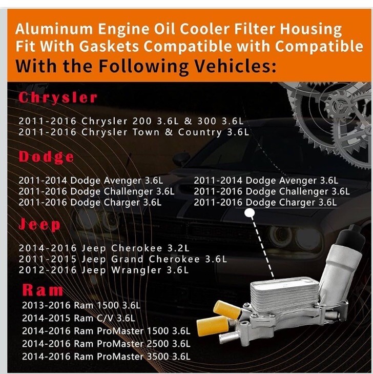 Aluminum Engine Oil Cooler Filter Housing Fits 11-16 Dodge Jeep Chrysler Ram3.6L