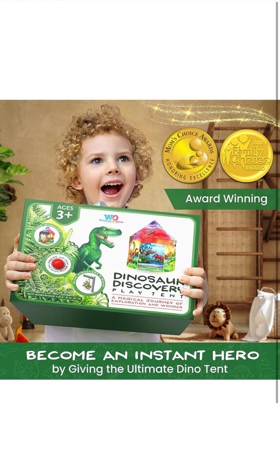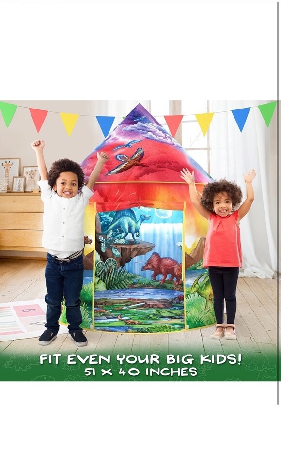 The W O Dinosaur Discovery Play Tent with Roar Button is an extraordinary pop-up tent designed for children aged 3 years and up. This multicolor tent features a dinosaur theme, perfect for young explorers. With a roar button for added excitement, this tent is sure to provide hours of imaginative play. The compact size and lightweight design make it easy to transport and set up, making it a great addition to any playtime adventure.