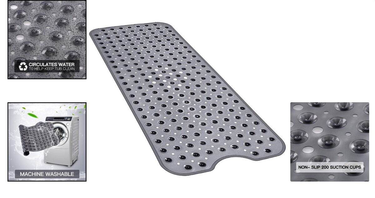 Vinyl Shower Safety Mat 40x16 with Drain Holes ? Machine Washable Stylish