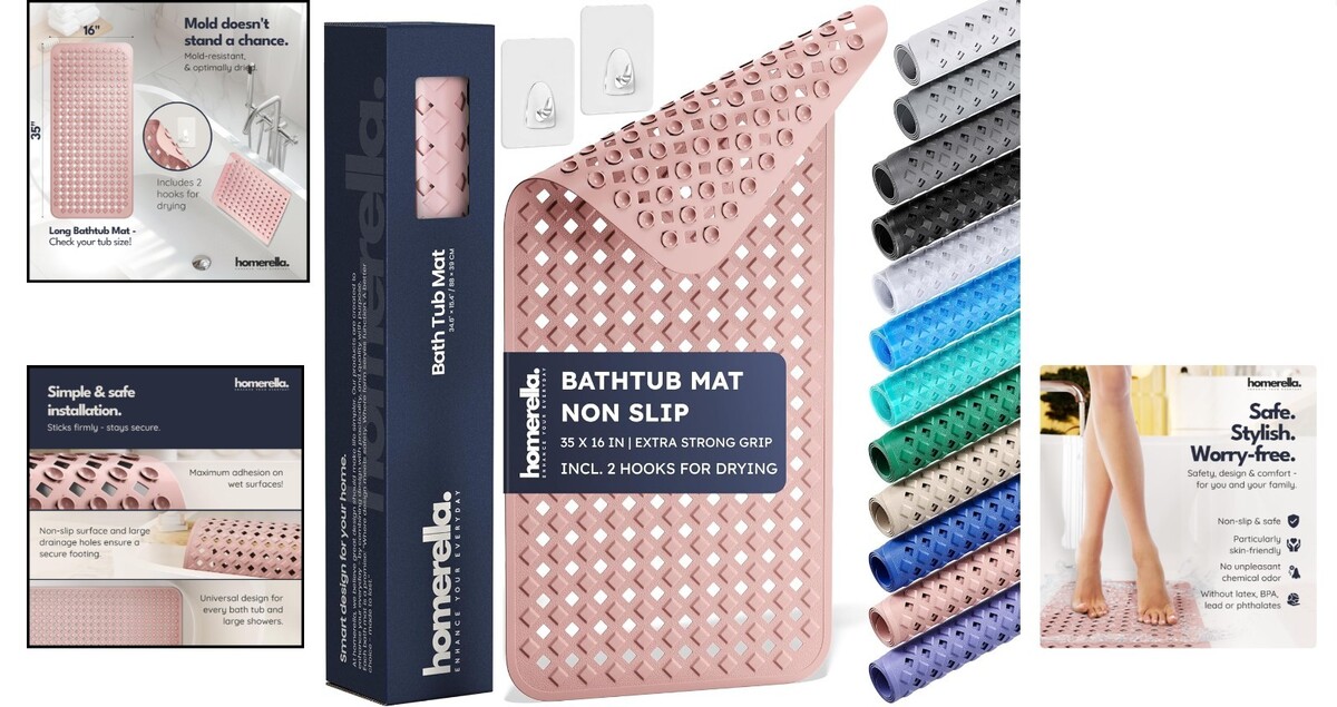 Mildew Resistant Bath Mat with Suction Cups - Long 35x16 for Ultimate Safety
