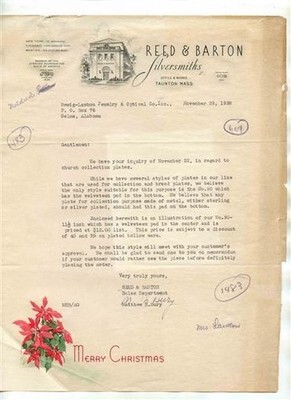 Reed Barton Silversmiths Taunton MA Product Information Letter Photo 1938