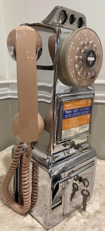 Gray Station Chrome Pay Telephone 1940's Fully Restored Beige