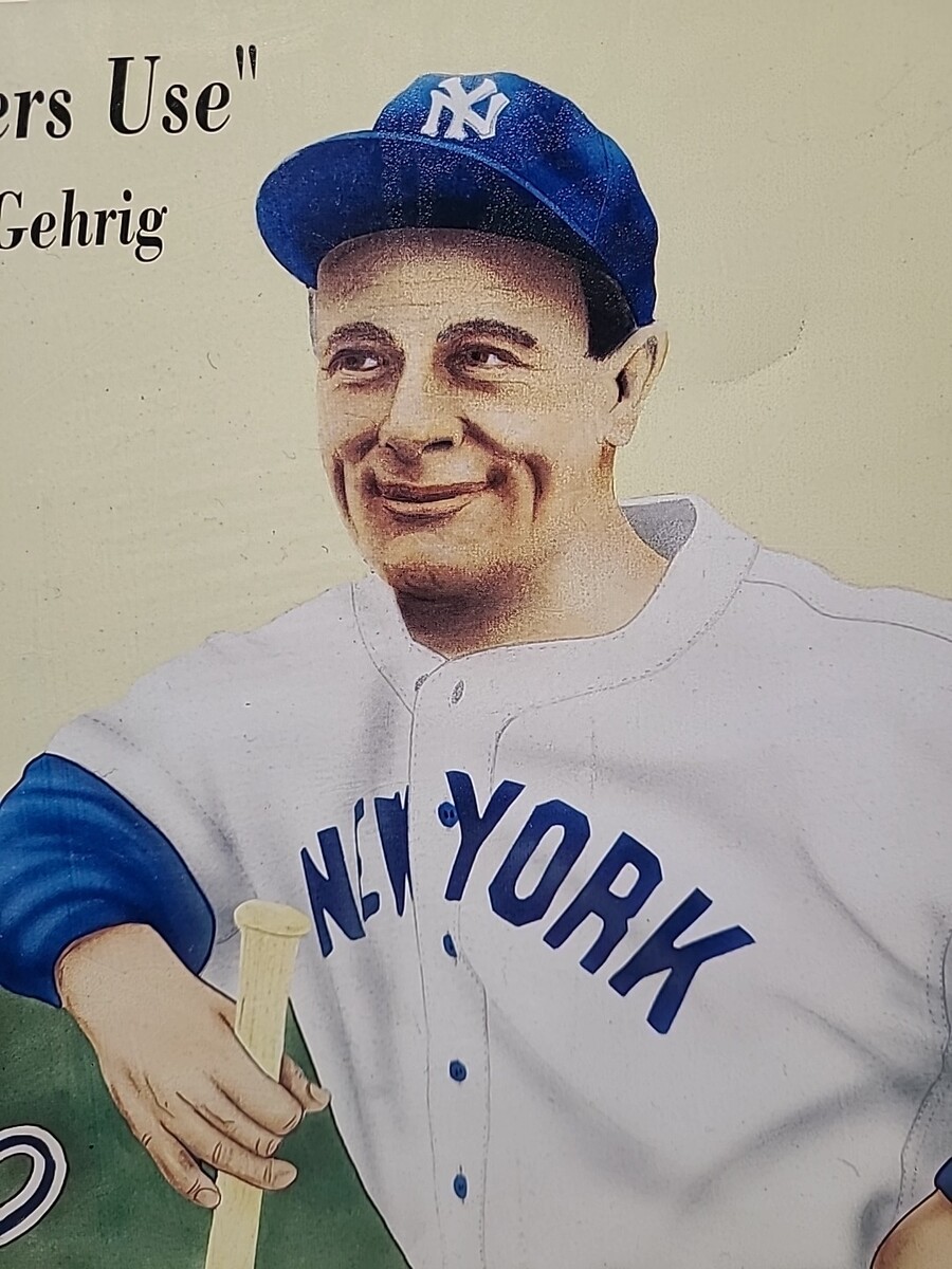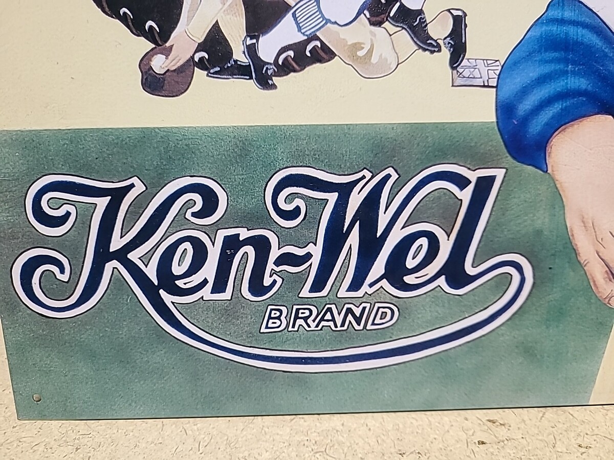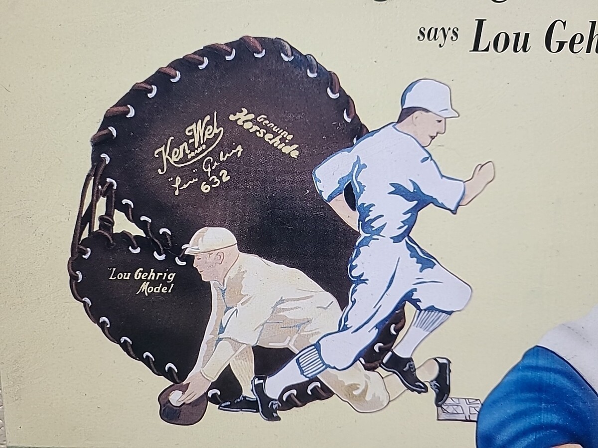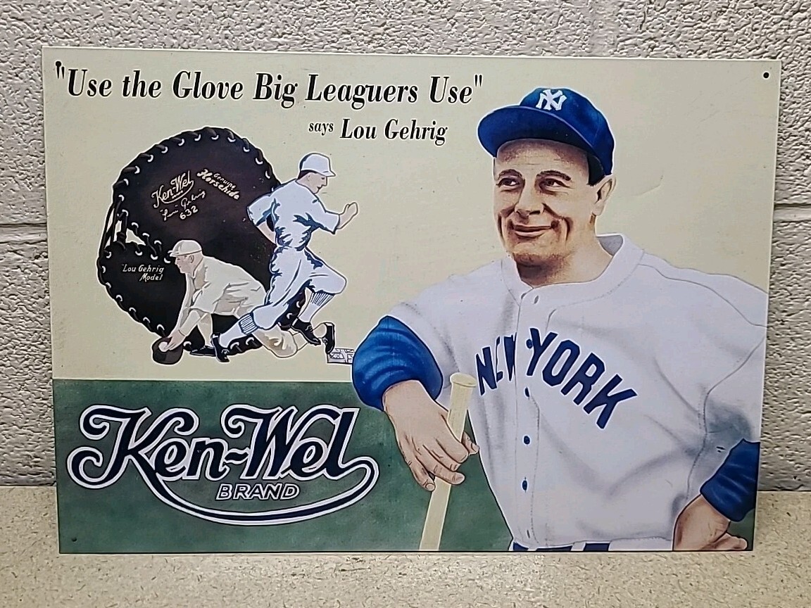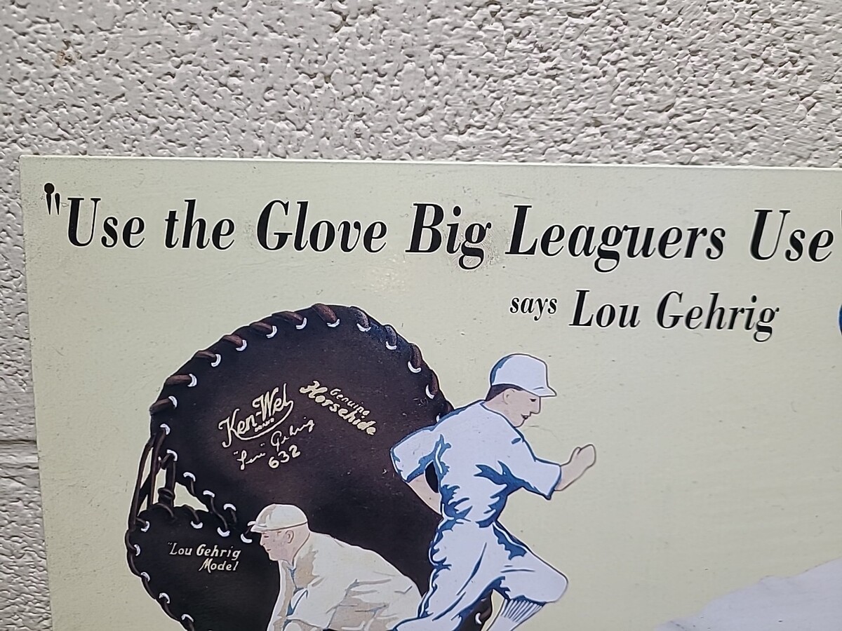 Vintage Lou Gehrig Ken-Wel Brand Tin Metal Sign 11 x 16"