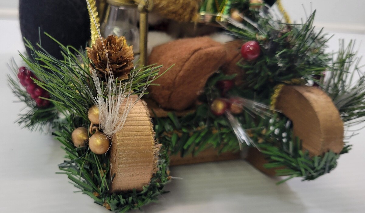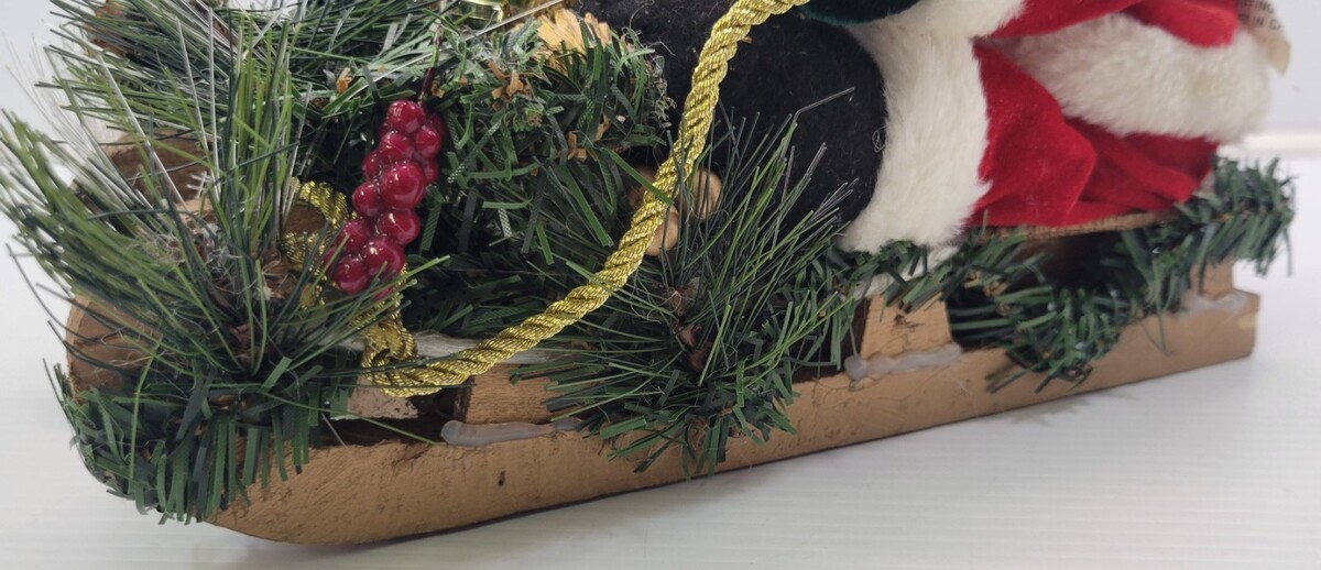 *C) Stuffed Santa and Reindeer on Wooden Sled Christmas Holiday Decoration