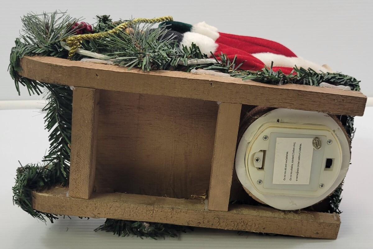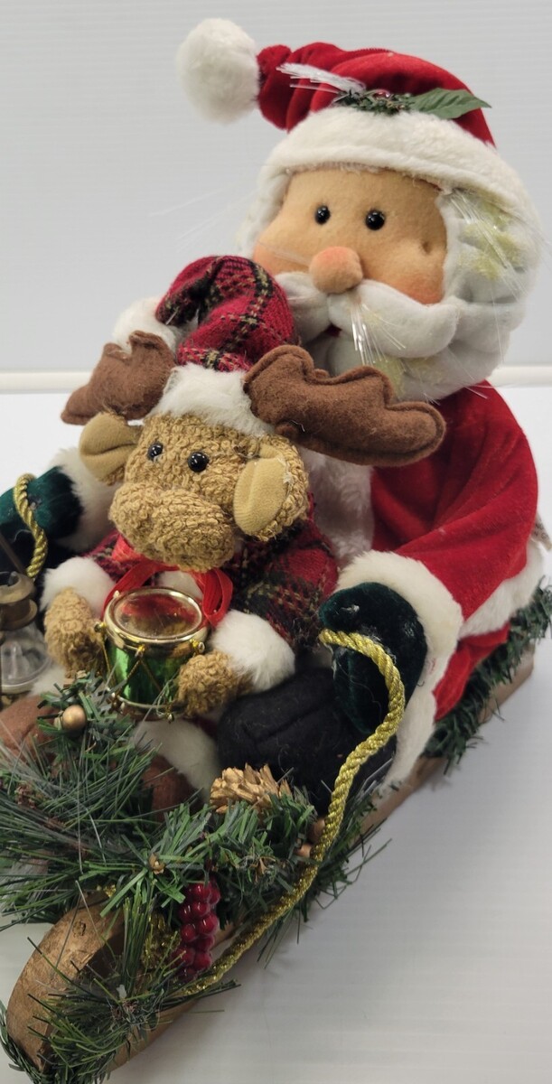 Stuffed Santa and Reindeer on Wooden Sled Christmas Holiday Decoration