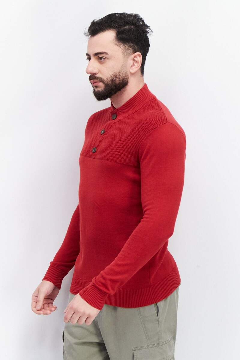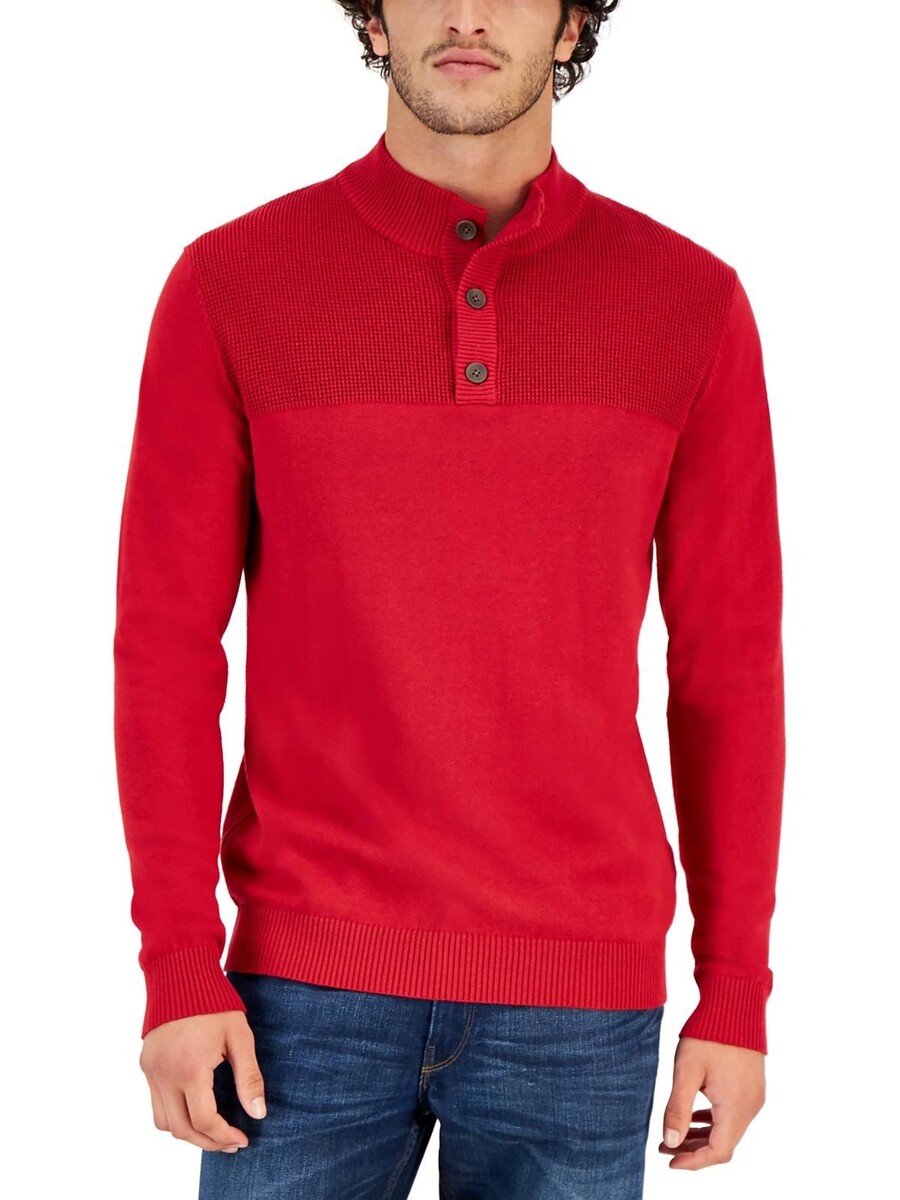 Club Room Men's Button Mock Neck Sweater Anthem Red-Medium