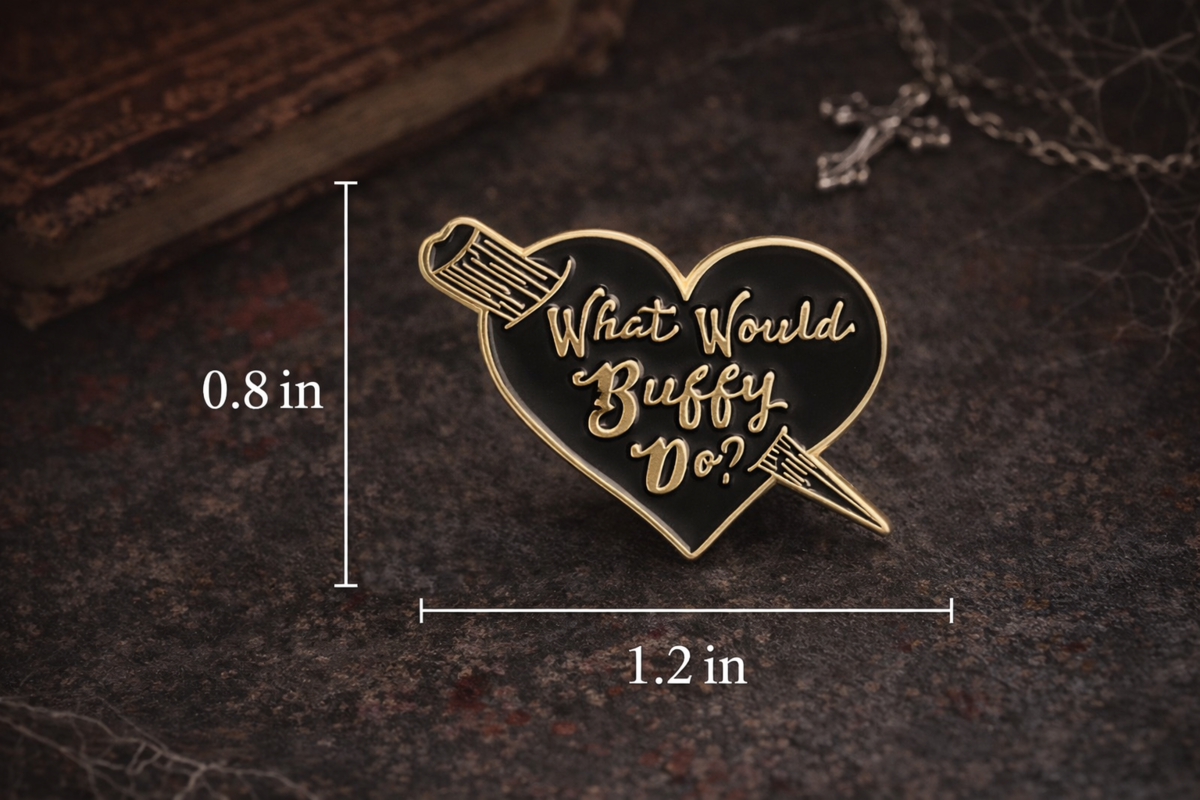 Channel your inner Slayer with this iconic ?What Would Buffy Do?? heart-shaped enamel pin ? the perfect accessory for fans of Buffy the Vampire Slayer 90s nostalgia, soft-goth vibes, and anyone who loves a good quip before saving the world. ?