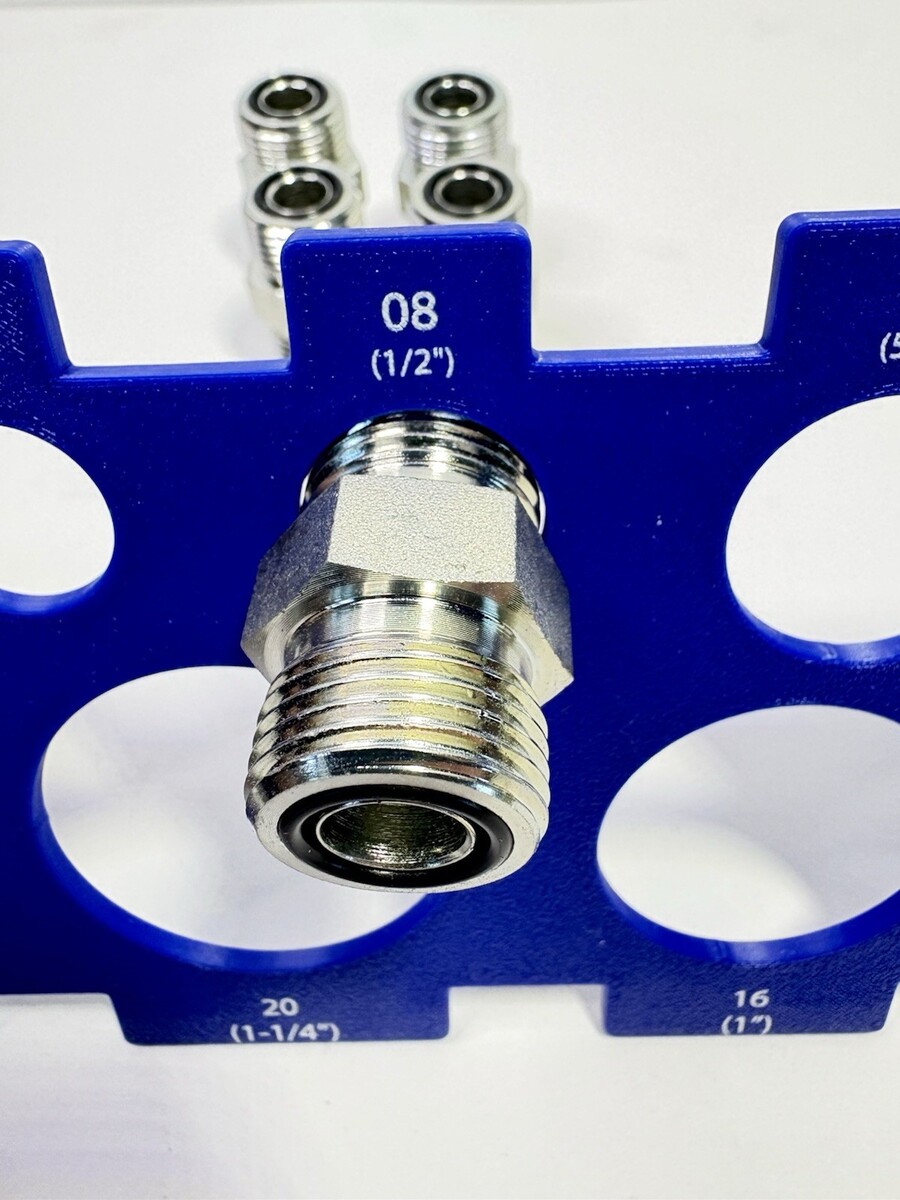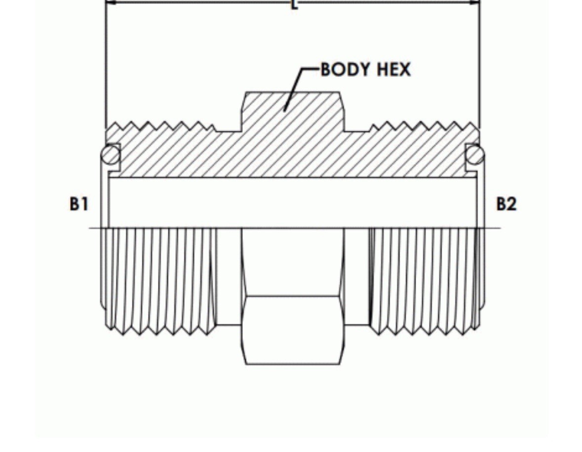 Plated steel, 1/2 inch male o-ring face seal X 1/2 inch male o-ring face seal, hex body, hydraulic fittings, lot of 5.