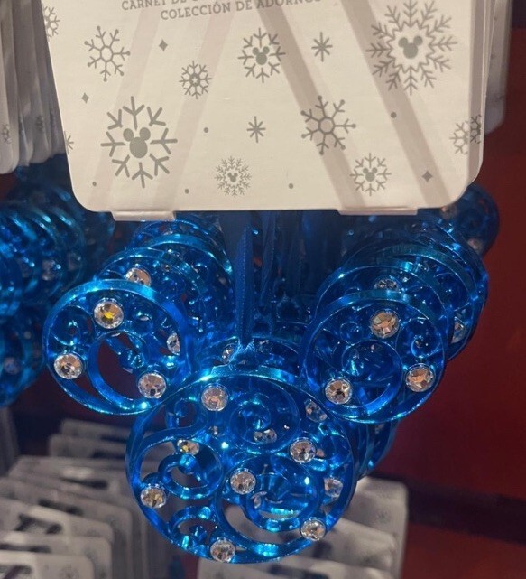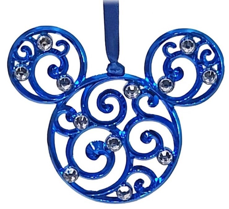 Disney Parks Mickey Mouse Icon Biue Color Filigree Ornament with Faux Gems NEW