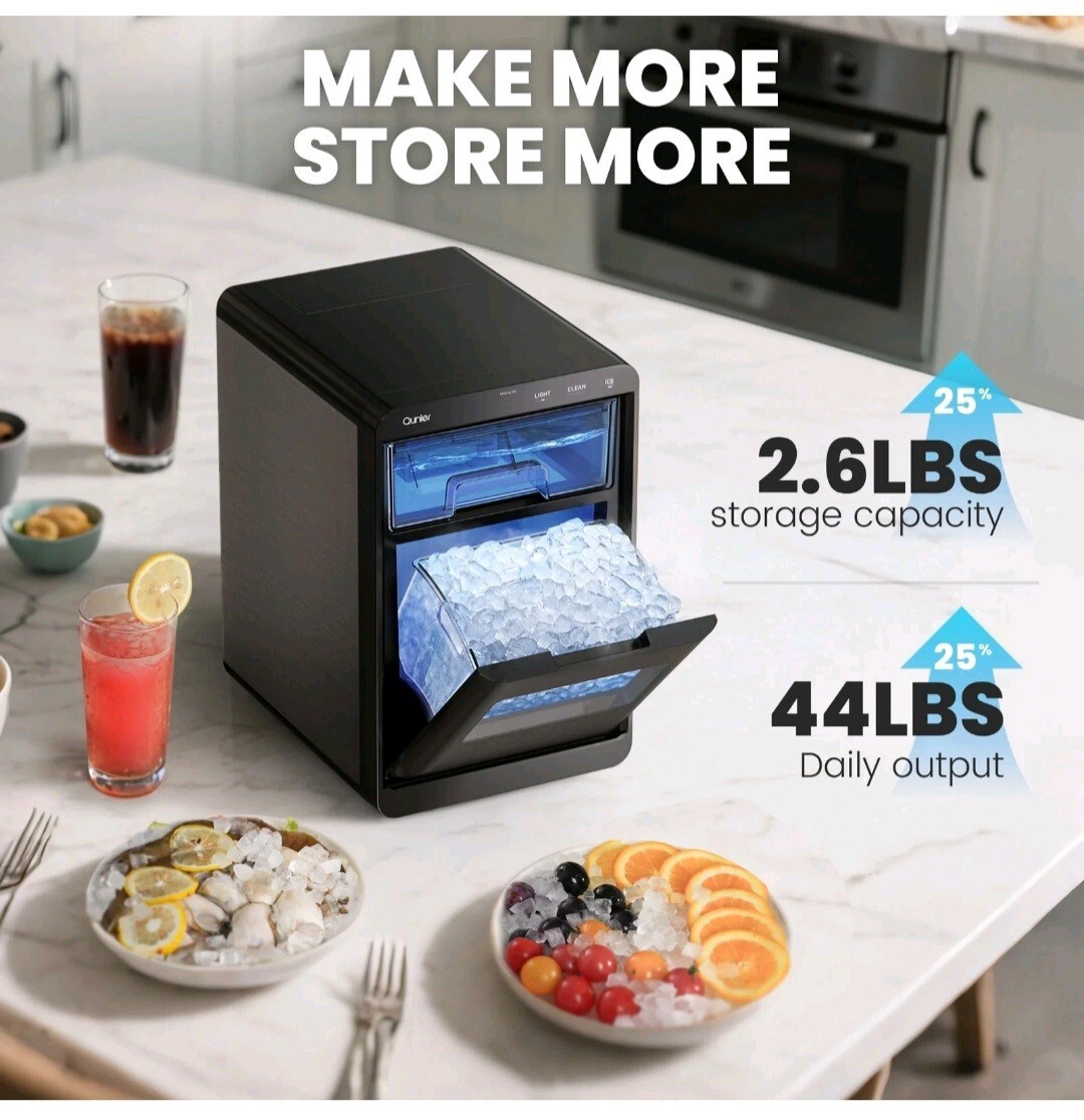 Qunler Nugget Ice Maker Countertop, 44lbs per Day Chewable Pebble Nugget Ice Machine with Touch Screen for Home, Kitchen, Office, Stainless Steel, Black