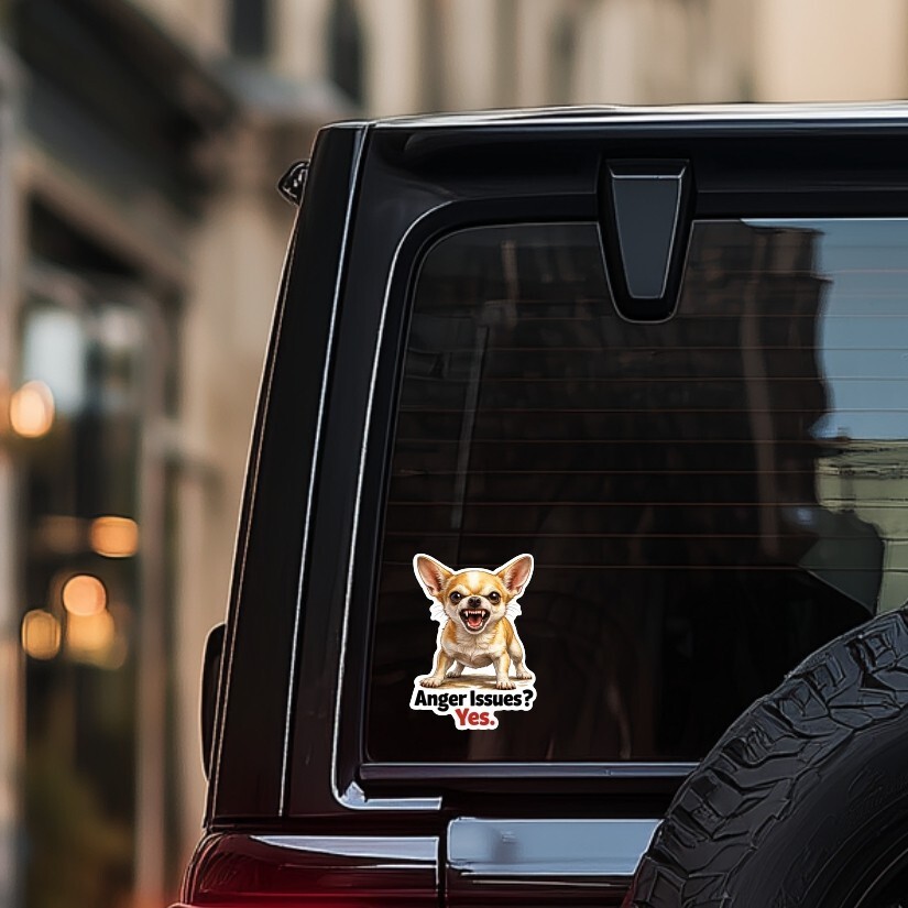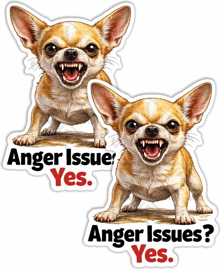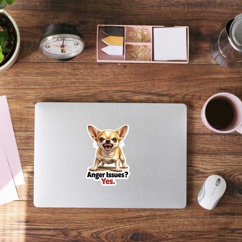 Chihiuahua Dog, Anger Issues, Funny Sticker, Peel N' Stick, Different Sizes